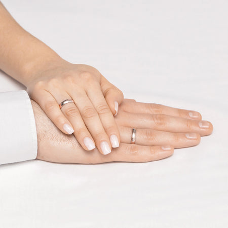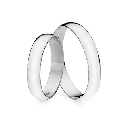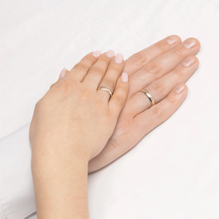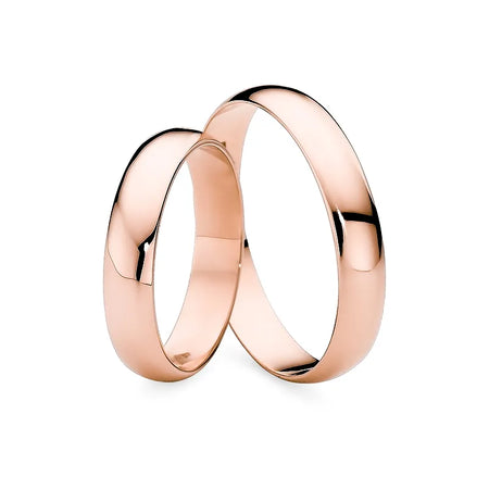 Classic Half-round Gold Wedding Bands Rings 4mm Handcrafted in the Gremari jewelry workshop, unique classic wedding rings made of 14K (585) gold, are a timeless symbol of everlasting love. The ring, 4mm wide and 1.2mm thick, looks beautiful on the hand, is subtle, and goes perfectly with other jewelry pieces, such as bracelets or rings with precious stones, or an engagement ring.We offer gold wedding band in three precious shades: classic yellow gold delights with its warm glow and is a timeless symbol of marriage; elegant white gold has a modern, cool, mirror-like shine reminiscent of platinum; while romantic rose gold captivates with its subtle, warm, and fashionable hue. Each pair of wedding rings is made in our workshop according to the customer's order. It is possible to personalise them further by adding an engraving with your own text. We pack the wedding rings in an elegant jewellery box, matching the character of your ceremony.
