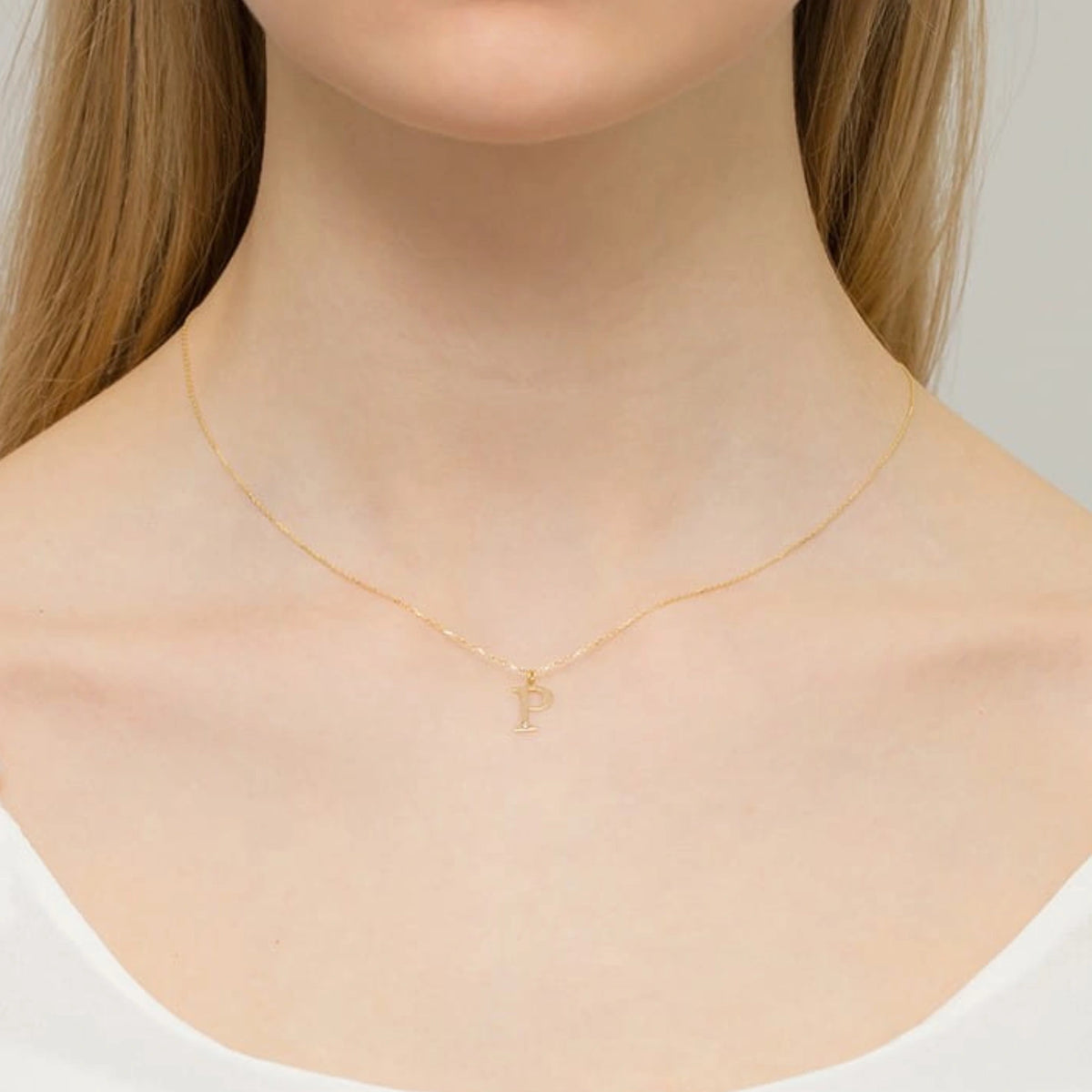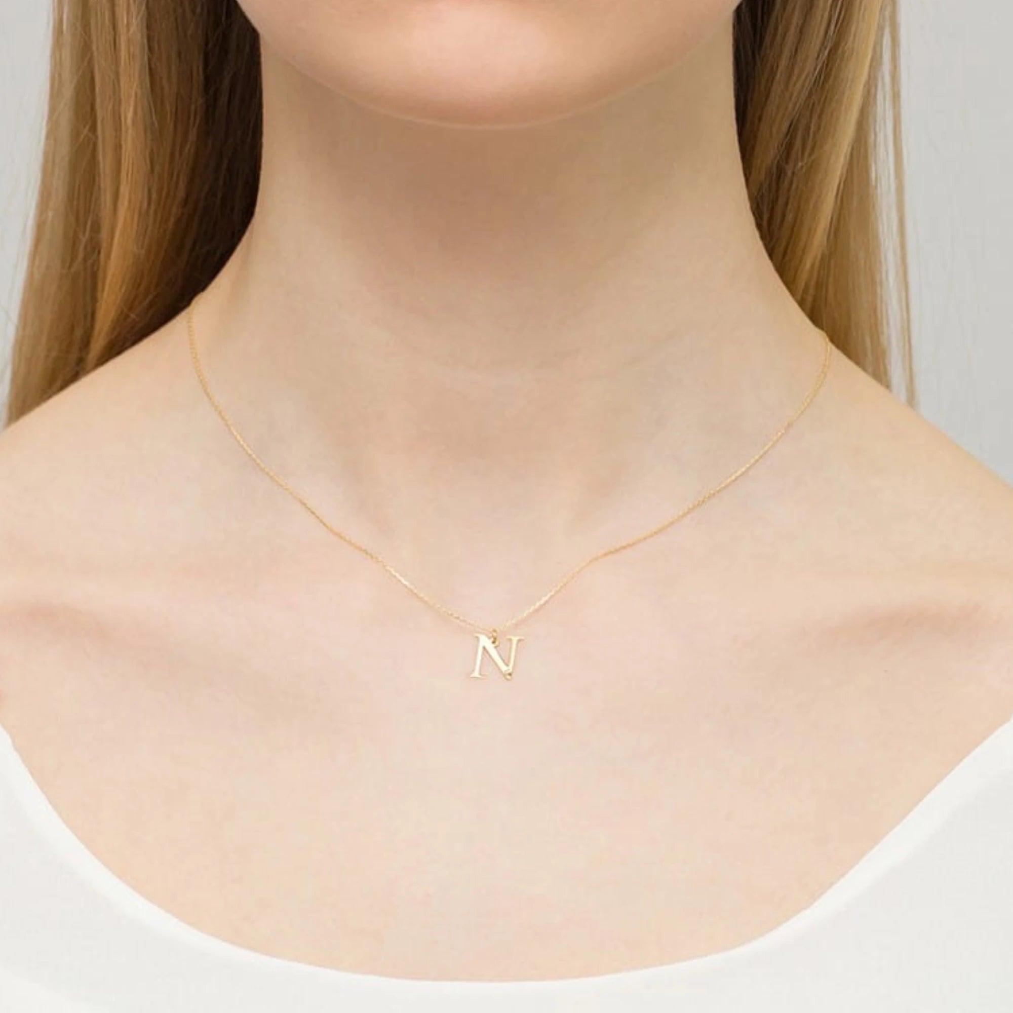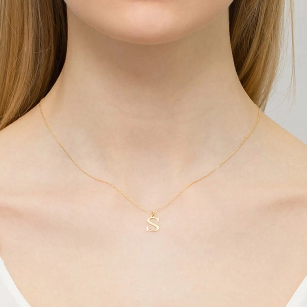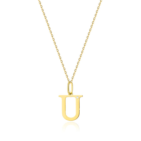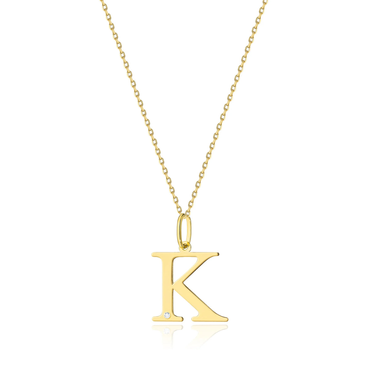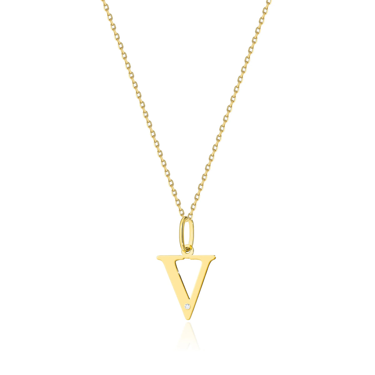 Gold Necklace with 0.005ct Diamond Letter Initials A-Z