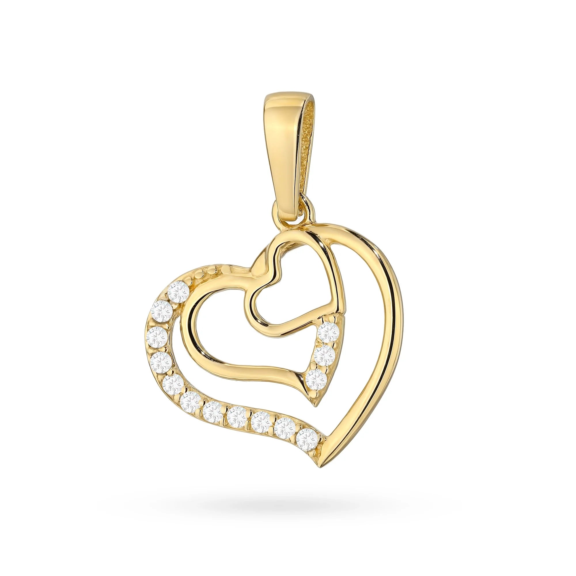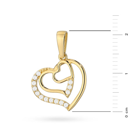 Gold Necklace with Heart-in-Heart Pendant and Cubic Zirconia