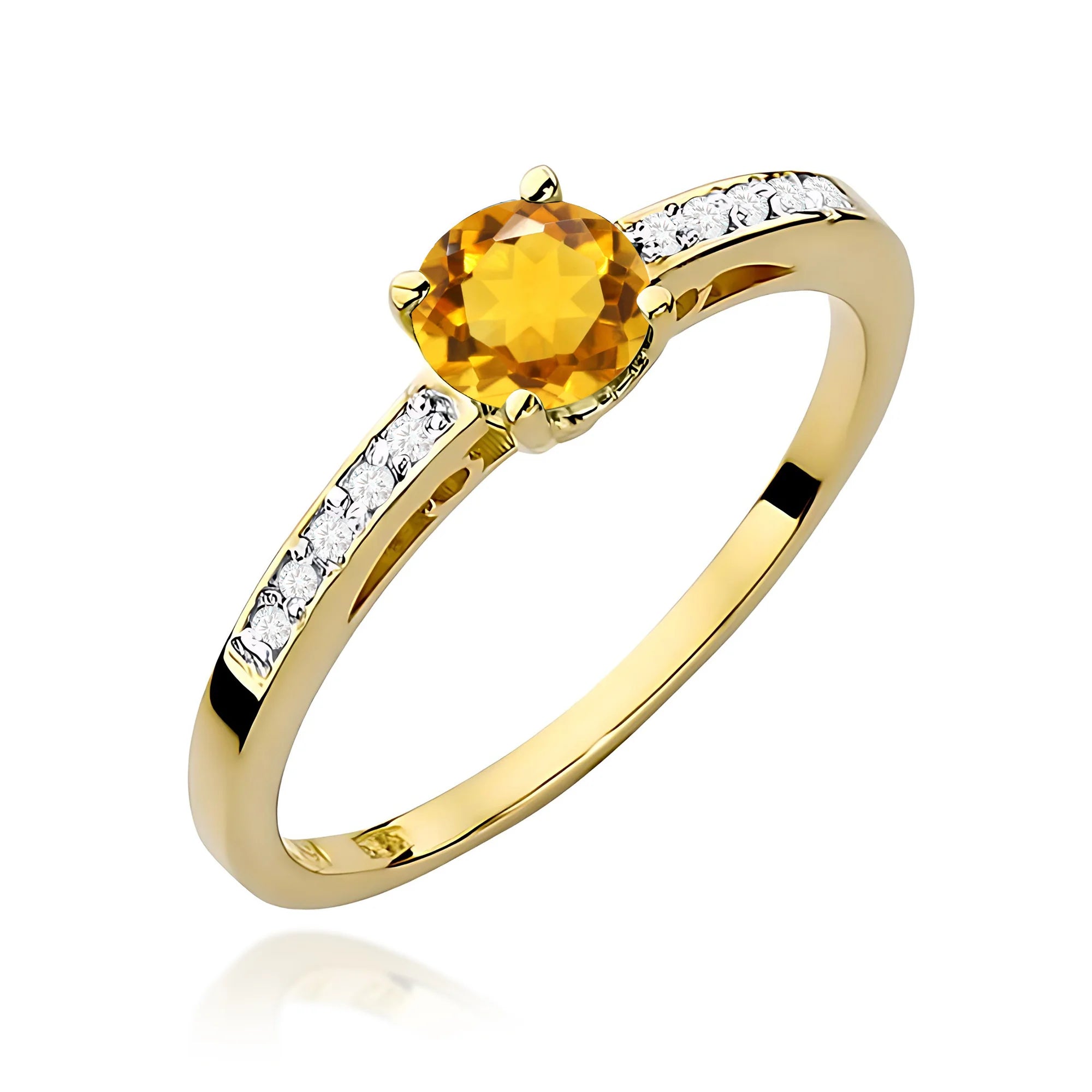 Gold Ring with Citrin 0.05ct Diamonds