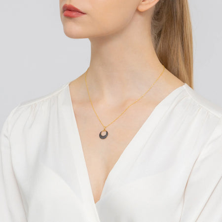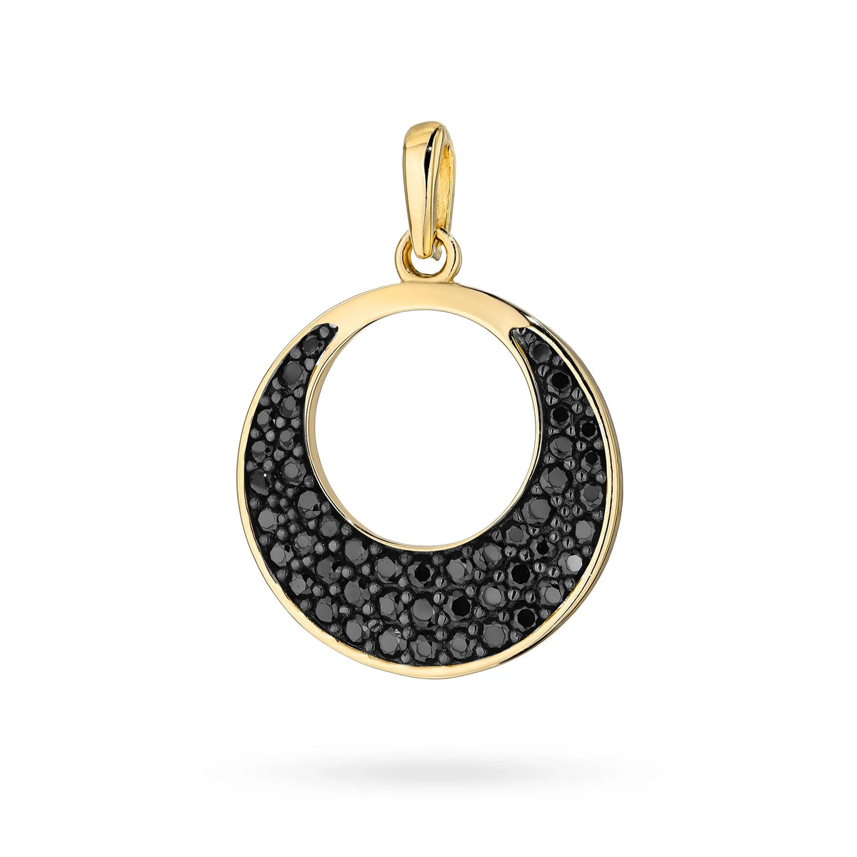 Gold set: open circle pendant with evil eye motif and black zirconia