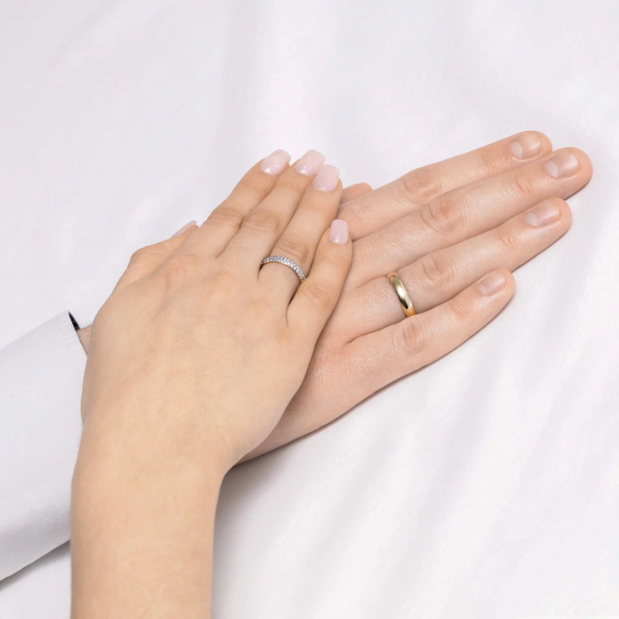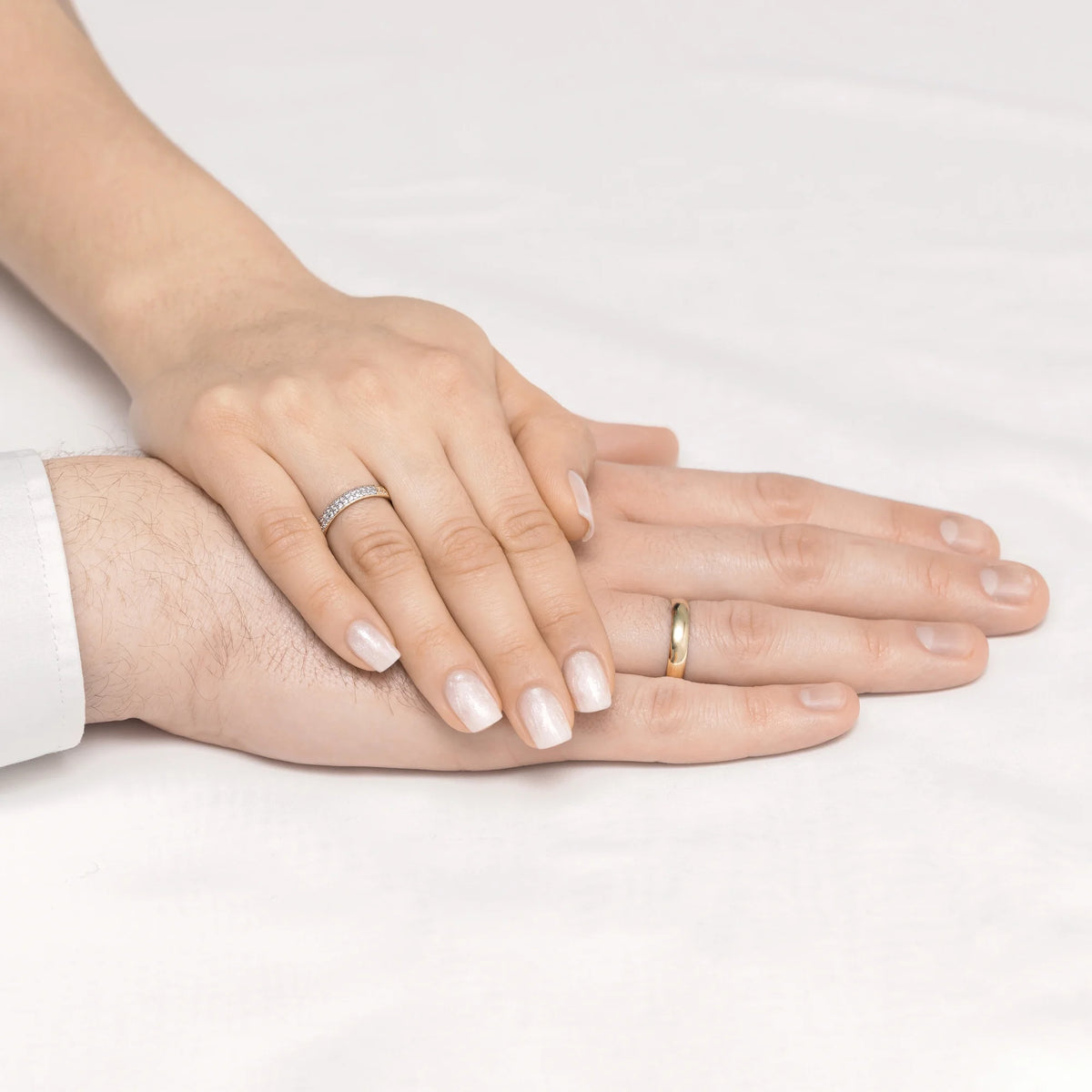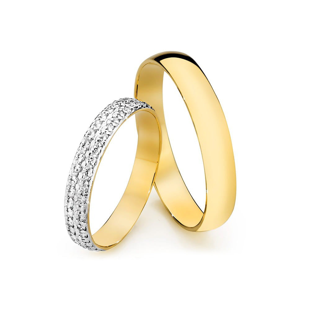 Handcrafted in the Gremari jewelry workshop, unique classic wedding rings made of 14K (585) gold, are a timeless symbol of everlasting love. The ring, 3.5 and 4mm wide, looks beautiful on the hand, is subtle, and goes perfectly with other jewelry pieces, such as bracelets or rings with precious stones, or an engagement ring.The women's ring has been embellished with  natural diamonds, stones formed deep within the Earth over millions of years, symbolizing an eternal love that can withstand anything. The authenticity of diamonds is confirmed by a certificate included with your purchase. Each pair of wedding rings is made in our workshop according to the customer's order. It is possible to personalise them further by adding an engraving with your own text. We pack the wedding rings in an elegant jewellery box, matching the character of your ceremony.