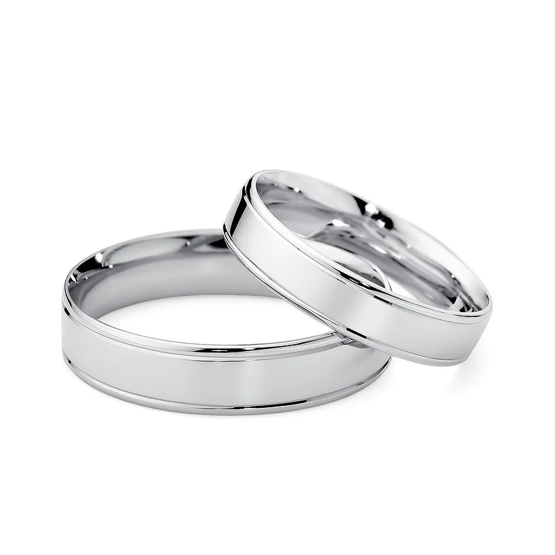 White gold Wedding Bands Rings 4mm Handcrafted in the Gremari jewelry workshop, unique classic wedding rings made of 14K (585) white gold, are a timeless symbol of everlasting love. The ring, 4mm wide, looks beautiful on the hand, is subtle, and goes perfectly with other jewelry pieces, such as bracelets or rings with precious stones, or an engagement ring. Each pair of wedding rings is made in our workshop according to the customer's order. It is possible to personalise them further by adding an engraving with your own text. We pack the wedding rings in an elegant jewellery box, matching the character of your ceremony.