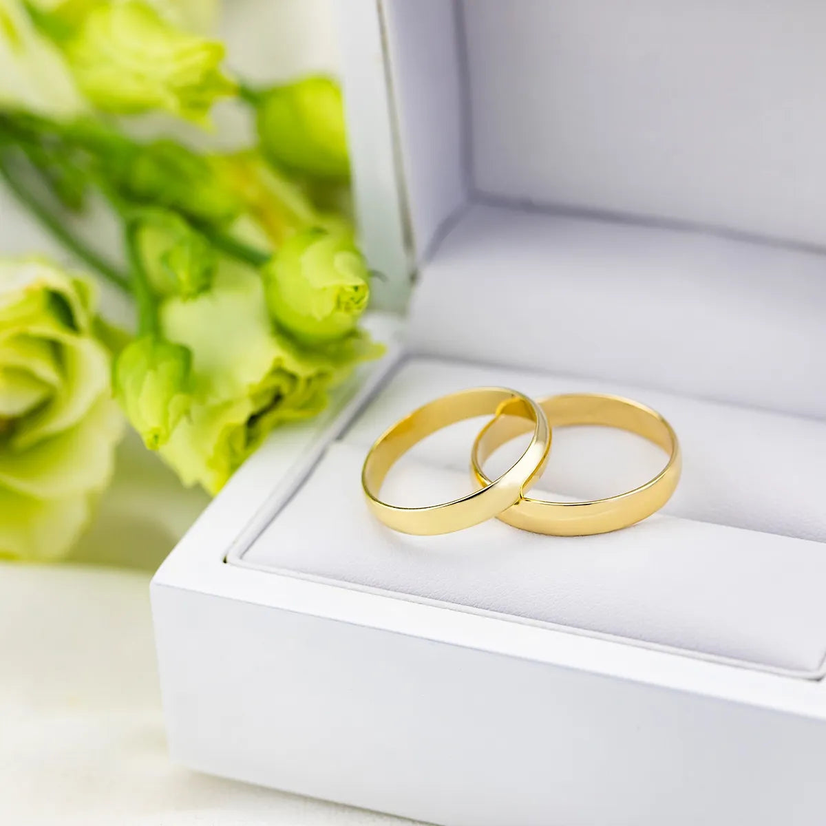 Klasické mierne zaoblené zlaté obrúčky 4 mm Ručne vyrobené v šperkovnici Gremari, jedinečné klasické svadobné prstene z 14K (585) zlata sú nadčasovým symbolom večnej lásky. Prsteň široký 4 mm a hrubý 1,2 mm krásne vyzerá na ruke, je nenápadný a dokonale ladí s inými šperkami, ako sú náramky alebo prstene s drahými kameňmi, či zásnubný prsteň. Ponúkame zlaté obrúčky v troch drahých odtieňoch: klasické žlté zlato očarí svojím teplým leskom a je nadčasovým symbolom manželstva; elegantné biele zlato má moderný, chladný, zrkadlový lesk pripomínajúci platinu; zatiaľ čo romantické ružové zlato zaujme svojím jemným, teplým a módnym odtieňom. Každý pár svadobných prsteňov je vyrobený v našej dielni podľa objednávky zákazníka. Je možné ich ďalej personalizovať pridaním gravírovania s vlastným textom. Svadobné prstene balíme do elegantnej šperkovnice, ktorá ladí s charakterom vašej obrady.