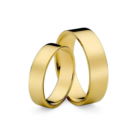 Klasické ploché zlaté svadobné obrúčky prstene 5 a 6 mm