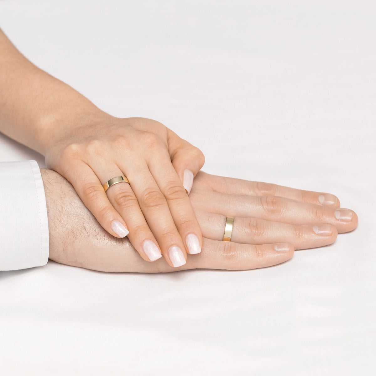 Klasické Ploché zlaté obrúčky 5 a 6 mm Ručne vyrobené v šperkovnici Gremari, jedinečné klasické svadobné prstene z 14K (585) zlata sú nadčasovým symbolom večnej lásky. Prsteň, široký 5 a 6 mm a hrubý 1,2 mm, vyzerá na ruke krásne, je nenápadný a dokonale ladí s inými šperkami, ako sú náramky alebo prstene s drahými kameňmi, či zásnubný prsteň. Ponúkame zlaté obrúčky v troch drahých odtieňoch: klasické žlté zlato poteší svojím teplým leskom a je nadčasovým symbolom manželstva; elegantné biele zlato má moderný, chladný, zrkadlový lesk pripomínajúci platinu; zatiaľ čo romantické ružové zlato očarí svojím jemným, teplým a módnym odtieňom. Každý pár svadobných prsteňov je vyrobený v našej dielni podľa objednávky zákazníka. Je možné ich ďalej personalizovať pridaním rytiny s vlastným textom. Svadobné prstene balíme do elegantnej šperkovnice, ktorá ladí s charakterom vašej ceremónie.