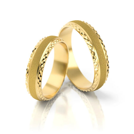Ručne vyrobené v šperkovnici Gremari, jedinečné klasické svadobné prstene z 14K (585) zlata sú nadčasovým symbolom večnej lásky. Prsteň, široký 5 mm a hrubý 1,3 mm, vyzerá na ruke krásne, je nenápadný a dokonale ladí s inými šperkami, ako sú náramky alebo prstene s drahými kameňmi, či zásnubný prsteň.