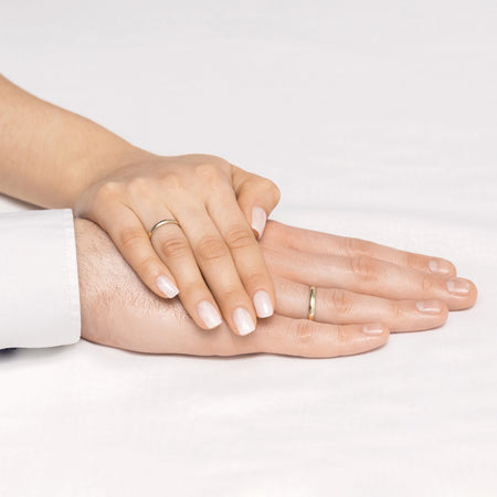 Klasický polguľatý jednoduchý zlatý svadobný prsteň 2 mm Ručne vyrobený v dielni šperkov Gremari, jedinečný jednoduchý klasický svadobný prsteň vyrobený z najkvalitnejšieho 14-karátového zlata s ryzlosťou 585, je nadčasovým symbolom večnej lásky. Prsteň široký 2 mm a hrubý 1,2 mm krásne vyzerá na ruke, je nenápadný a dokonale ladí s inými šperkami, ako sú náramky alebo prstene s drahokamami, či zásnubný prsteň. Aby sme vyhoveli očakávaniam našich zákazníkov, v Gremaeri ponúkame možnosť zakúpenia jednoduchého svadobného prsteňa, aby si každý mohol vybrať podľa vlastných preferencií. Iné ponuky zahŕňajú rôzne šírky, tvary a povrchové úpravy svadobných prsteňov – vytvorte si svoj vlastný jedinečný dokonalý pár! Ponúkame zlaté svadobné prstene v troch drahých odtieňoch: klasické žlté zlato očarí svojím teplým leskom a je nadčasovým symbolom manželstva; elegantné biele zlato má moderný, chladný, zrkadlový lesk pripomínajúci platinu; zatiaľ čo romantické ružové zlato zaujme svojím jemným, teplým a módnym odtieňom. Každý svadobný prsteň je vyrobený v našej dielni podľa objednávky zákazníka. Je možné ho ďalej personalizovať pridaním rytiny s vlastným textom. Svadobný prsteň balíme do elegantnej šperkovnice, ktorá ladí s charakterom vašej obradu.