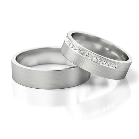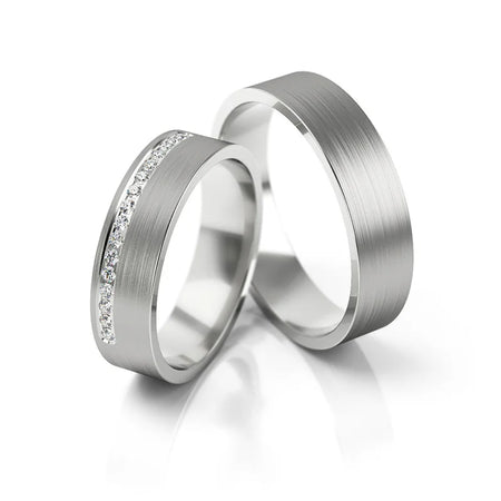 Ručne vyrobené v šperkovnici Gremari, jedinečné klasické svadobné obrúčky z 14K (585) bieleho zlata sú nadčasovým symbolom večnej lásky. Prsteň široký 5 mm a hrubý 1,4 mm krásne sedí na ruke, je nenápadný a dokonale ladí s inými šperkami, ako sú náramky alebo prstene s drahými kameňmi, či zásnubný prsteň.