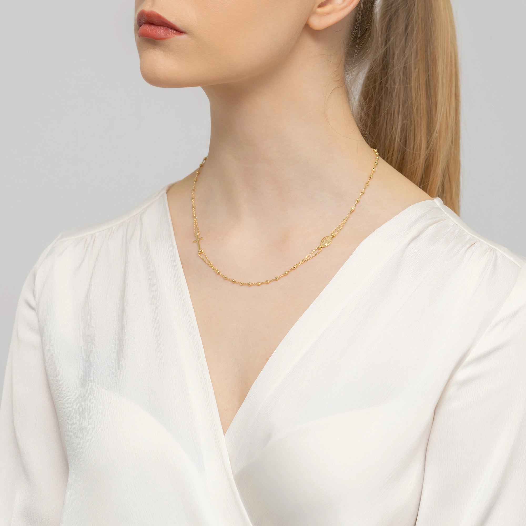 Zlatom pozlátený Strieborný náhrdelník s medailónovým krížom Ručne vyrobený v tradičnej dielni šperkov Gremari, tento Strieborný náhrdelník je elegantným doplnkom ku všetkým typom outfitov. Náhrdelník je špeciálny kúsok šperku, ktorý ženy milujú. Krásne sedí na krku ženy a zdôrazňuje iskru v jej očiach. Je to dokonalý darček pre vašu milovanú osobu. Strieborný, alebo 925 strieborný, znamená eleganciu a trvácnosť vo svete šperkov.
