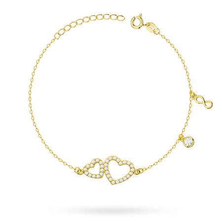 Súprava pozlátený náhrdelník a náramok — srdcia a nekonečno s kubickou zirkóniou