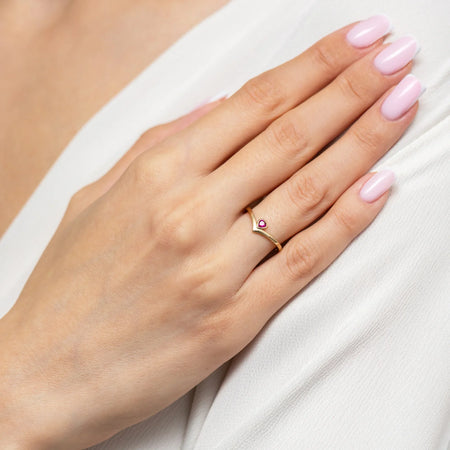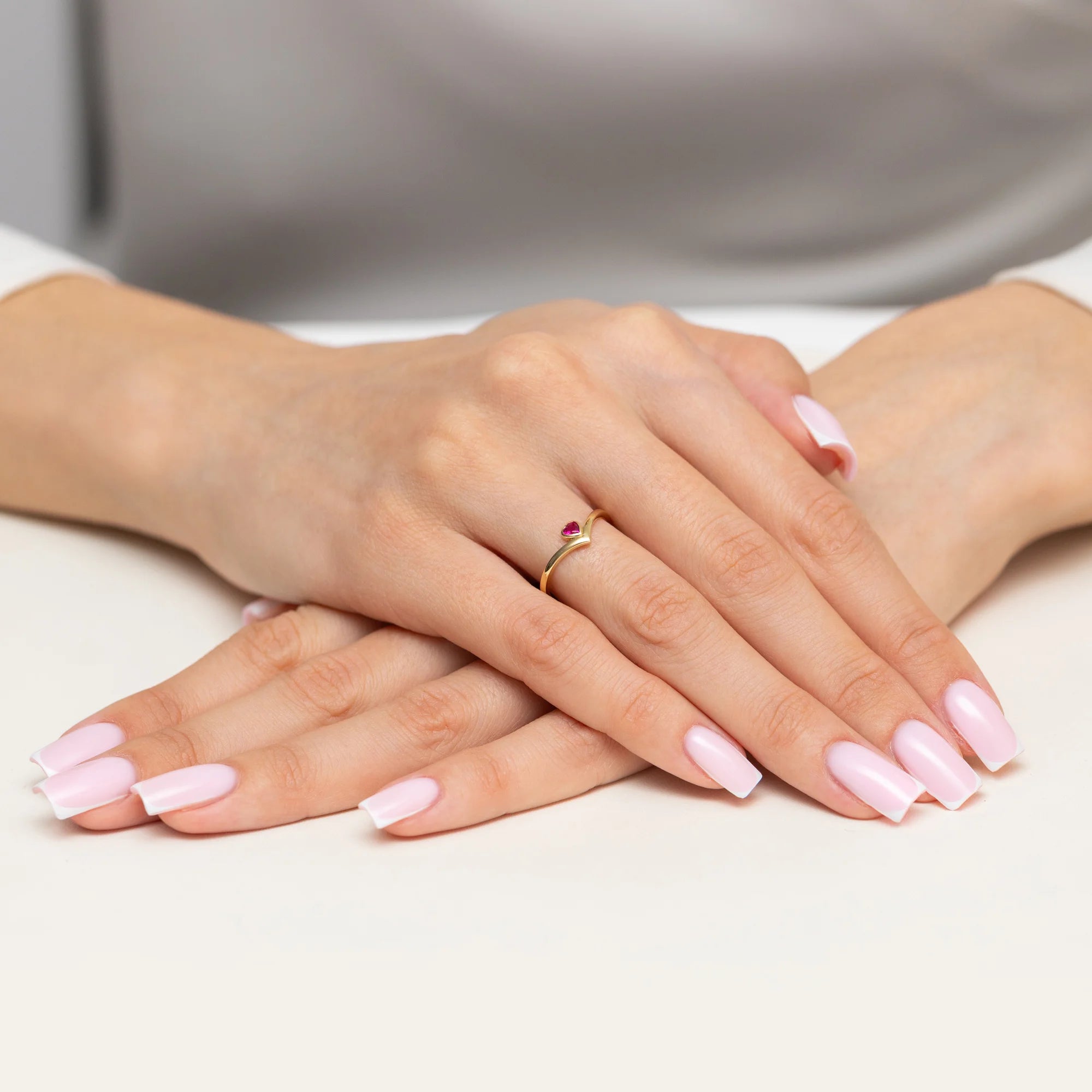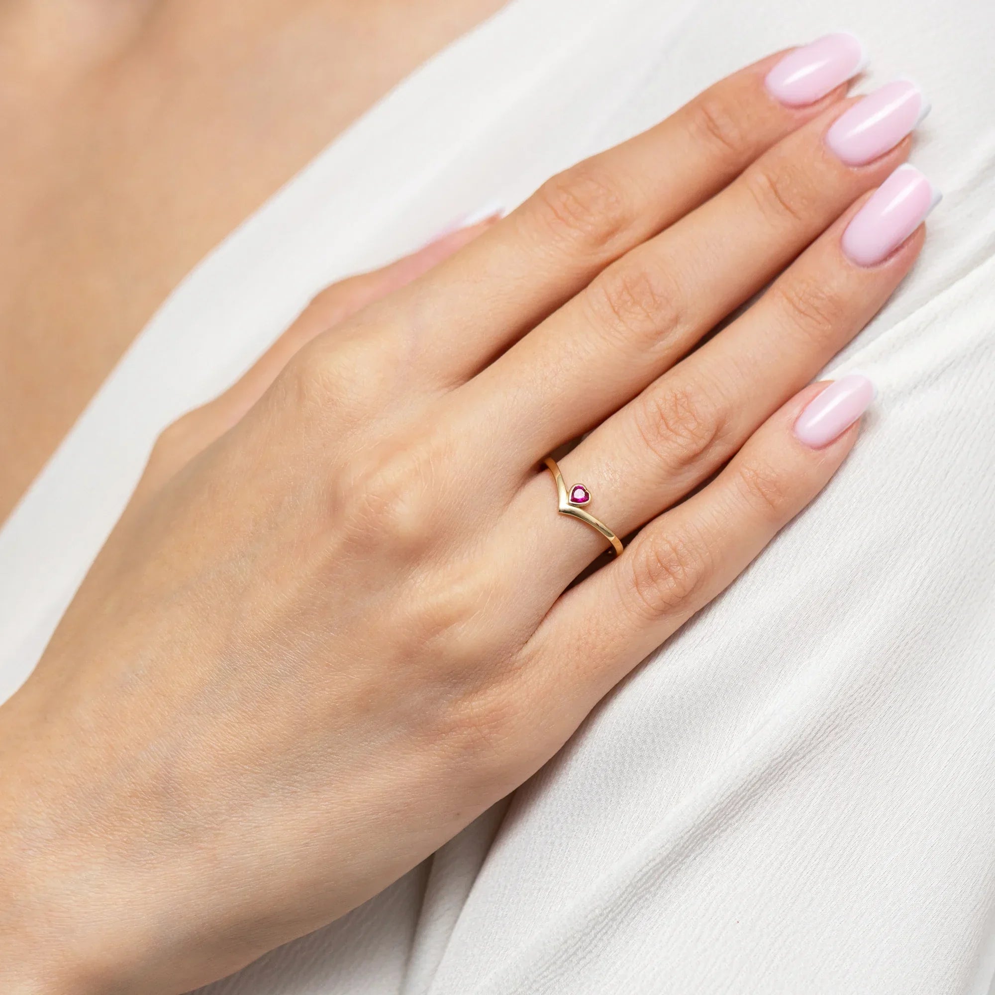 Prsteň zo zlata v tvare srdca s rubínovou zirkóniou