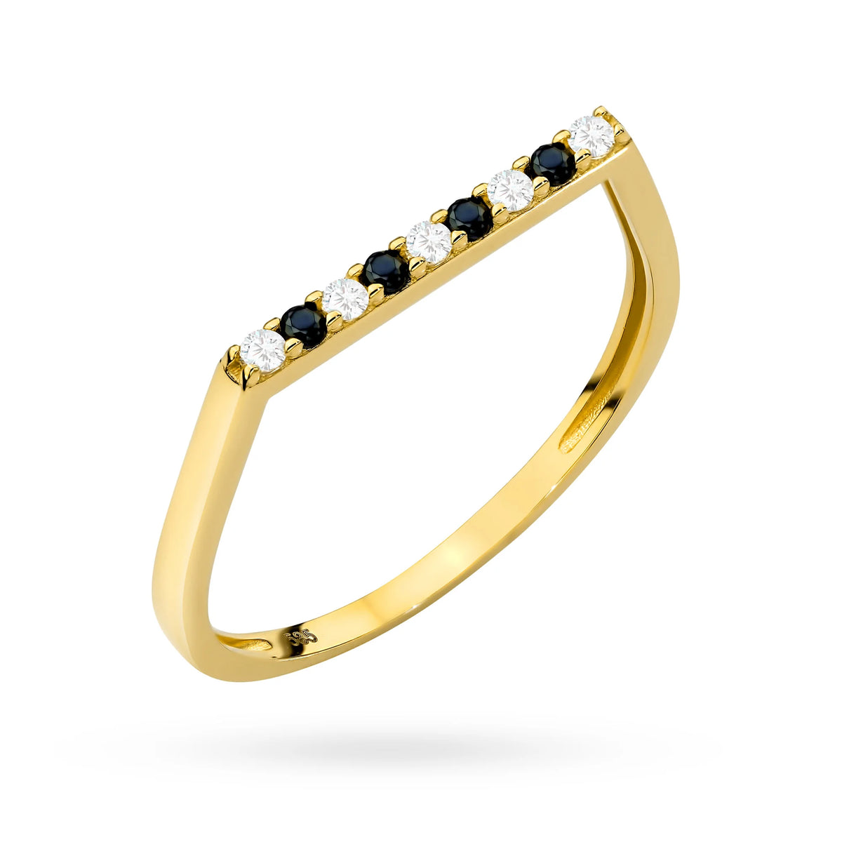 Zlatý prsteň s čiernou a bielou zirkóniou