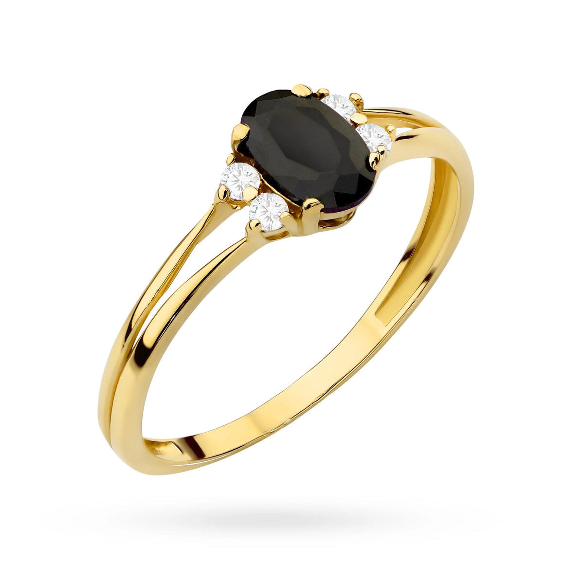 Zlatý prsteň s čiernym oválnym kameňom a zirkónmi