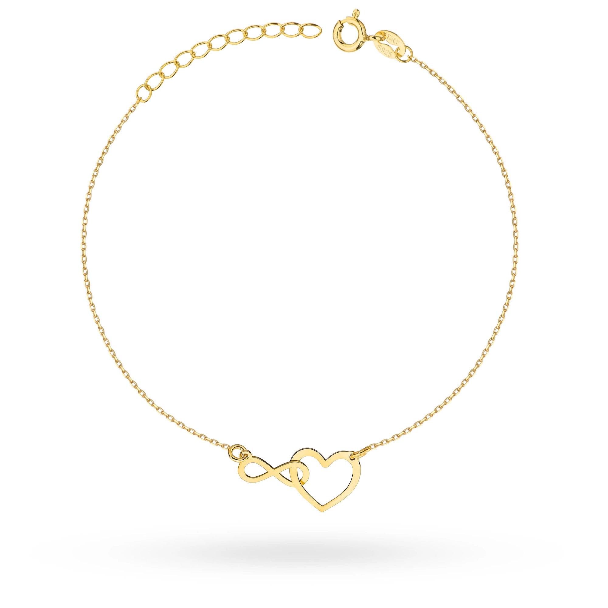 Súprava náhrdelníka a náramku pozlátená zlatom — prepletené srdce a nekonečno