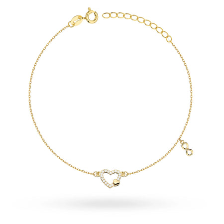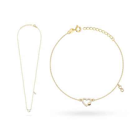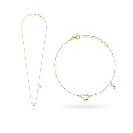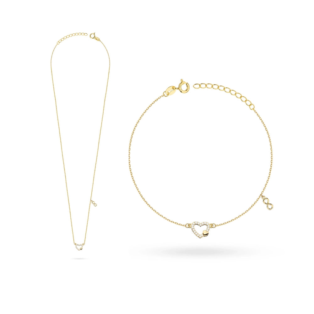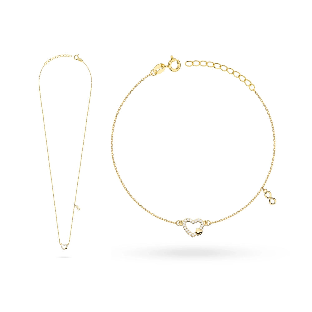 Súprava náhrdelníka a náramku pozlátená zlatom — srdce s kubickou zirkóniou a symbolom nekonečna