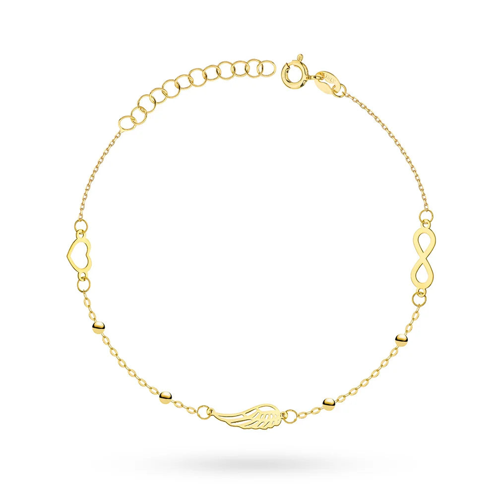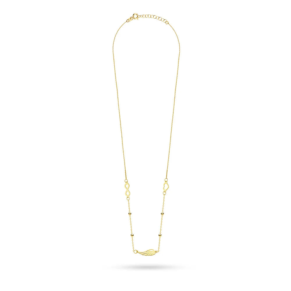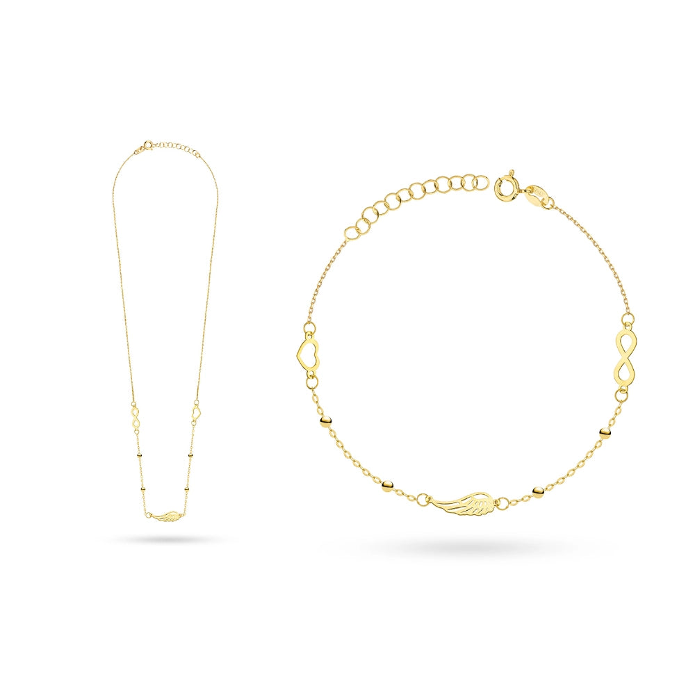 Súprava zlatých šperkov – náhrdelník a náramok so srdcom, krídlom a symbolom nekonečna