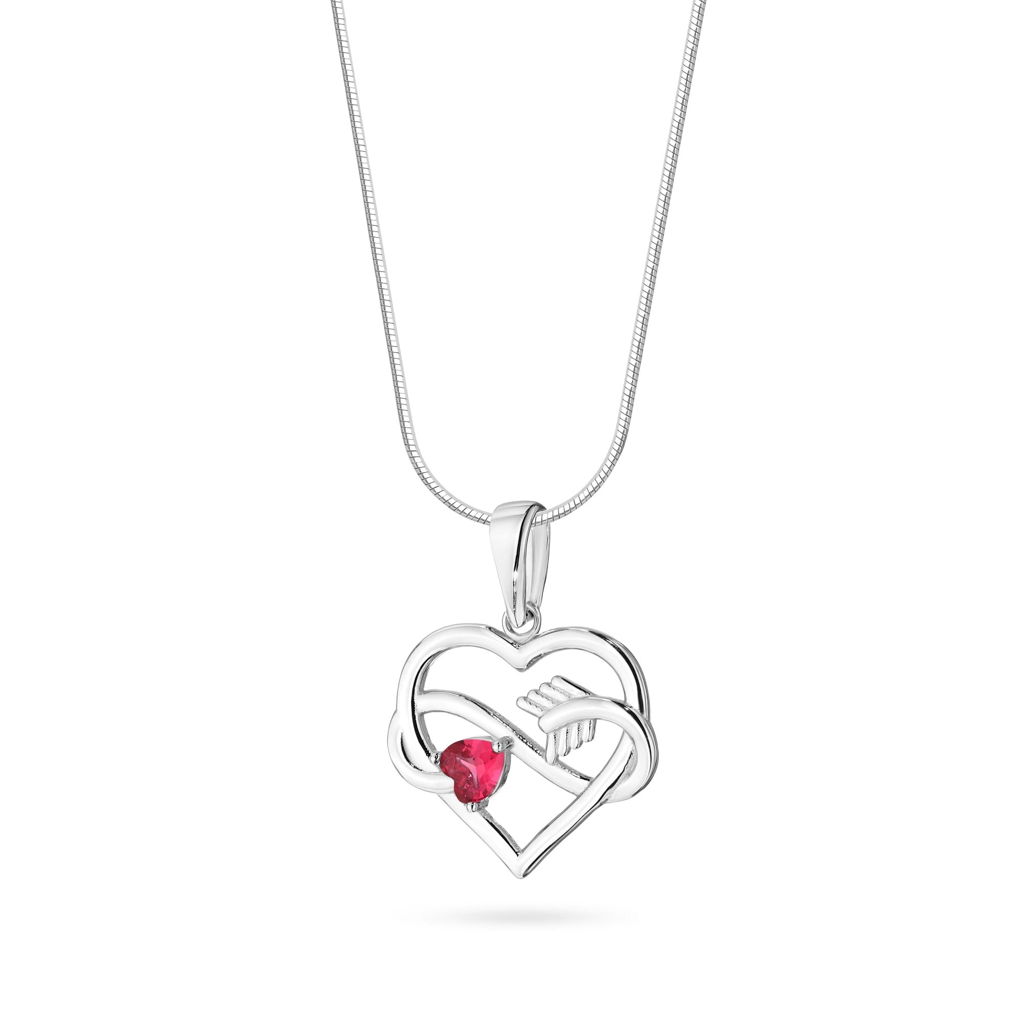 Strieborný náhrdelník so srdcom a symbolom nekonečna a červeným kubickým zirkónom