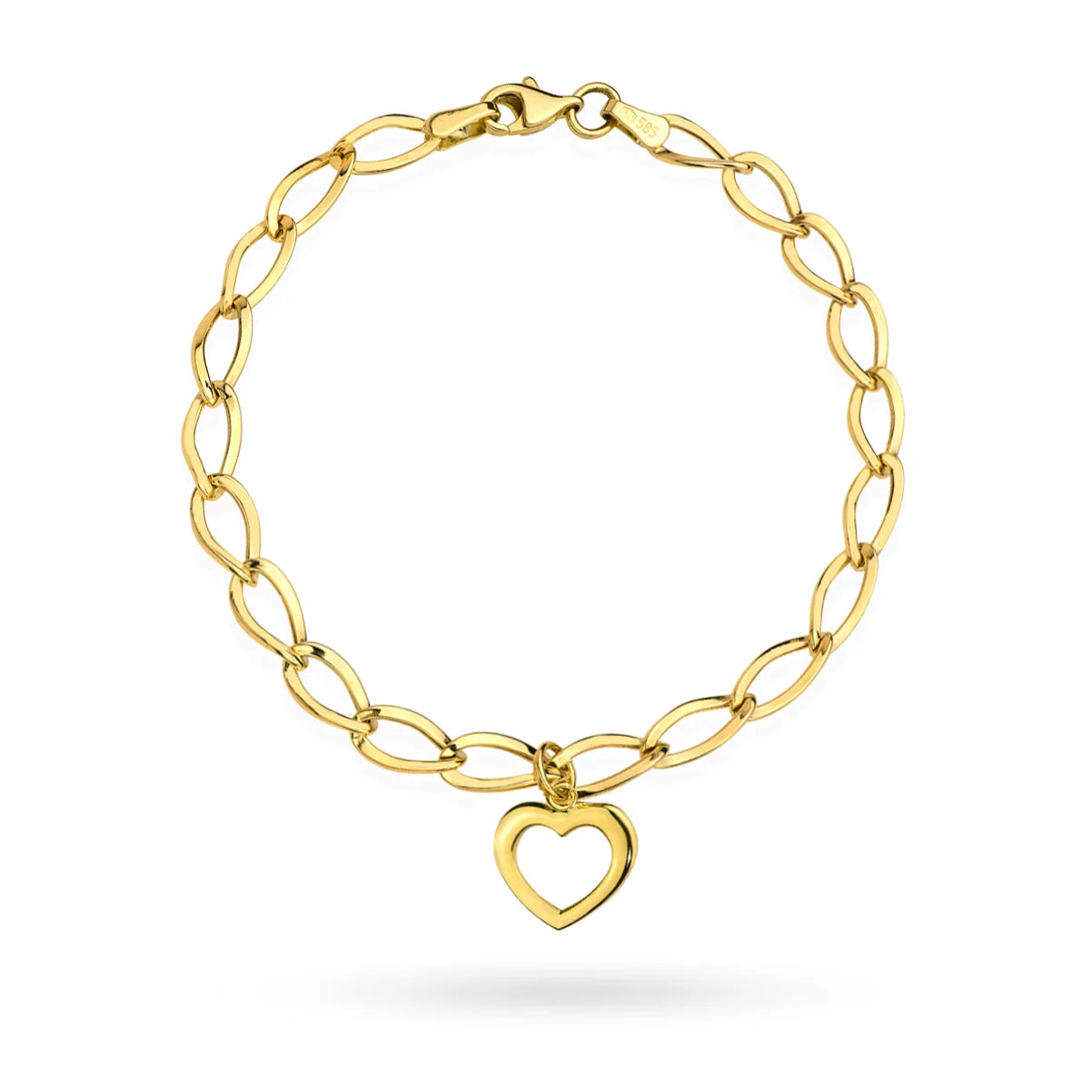 Gold bracelet with wide oval links and heart charm