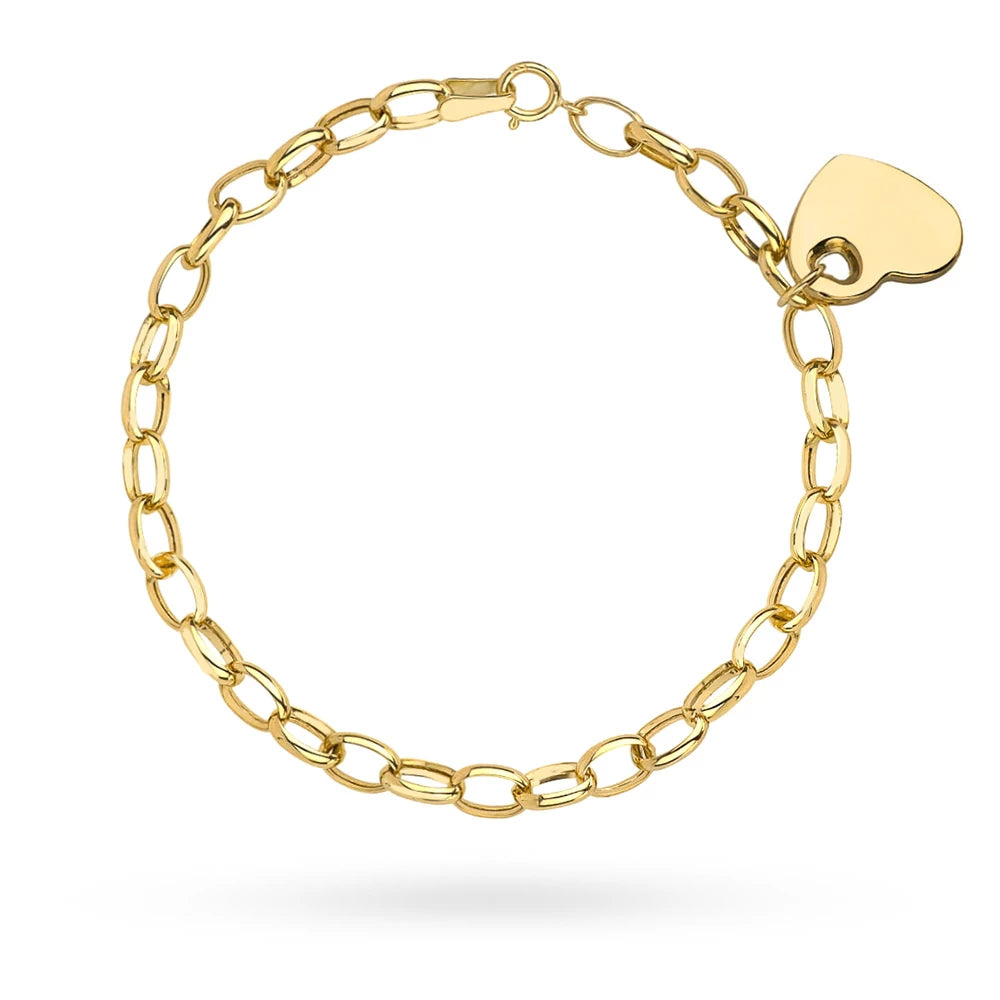 Zlatý masívny náramok so širokými článkami a vygravírovaným príveskom v tvare srdca