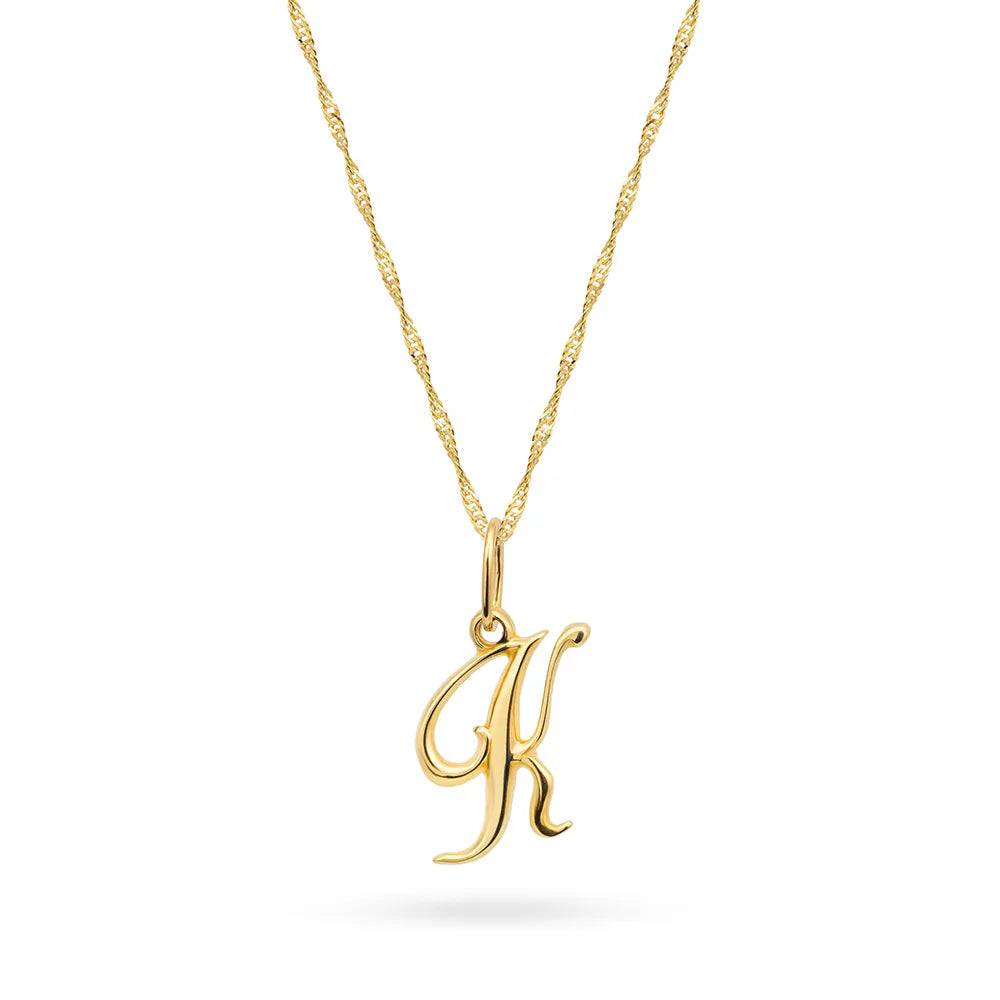 Náhrdelník so zlatým písmenom K na singapurskom reťazci