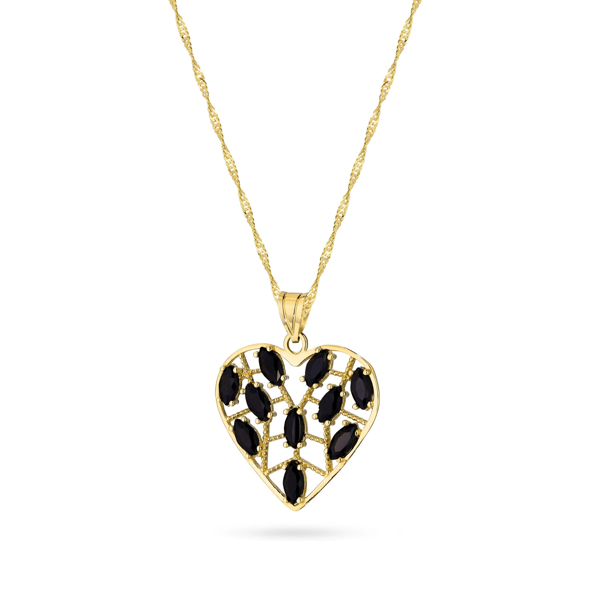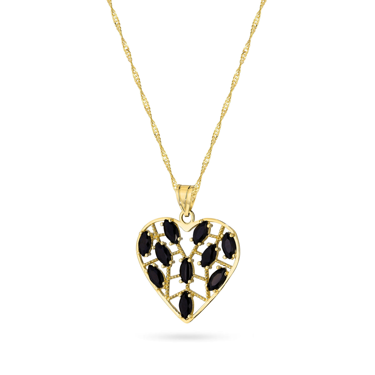 Zlatý náhrdelník s otvoreným príveskom v tvare srdca a čiernym kubickým zirkónom