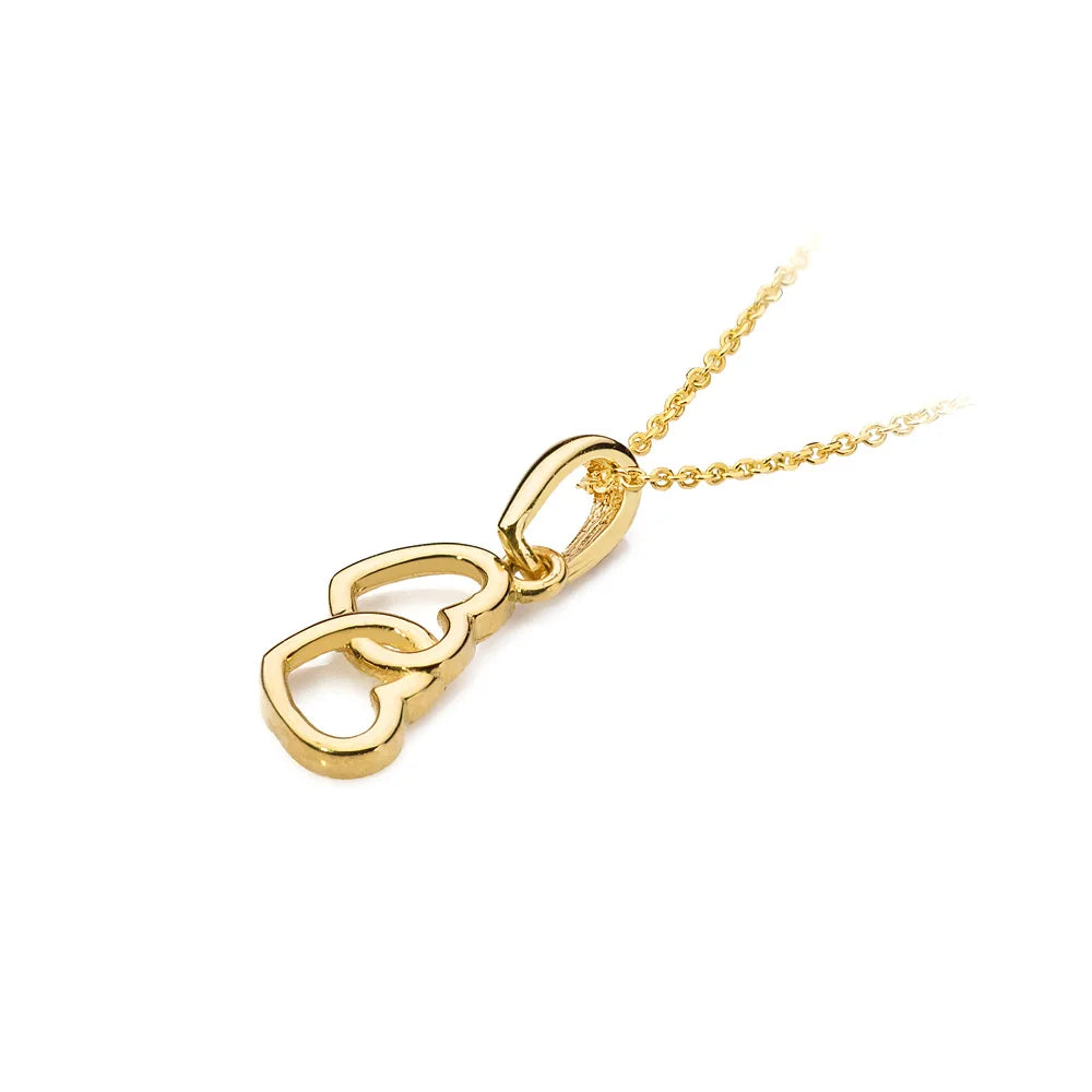Zlatý náhrdelník s príveskami v tvare spojených sŕdc na kotvovej retiazke