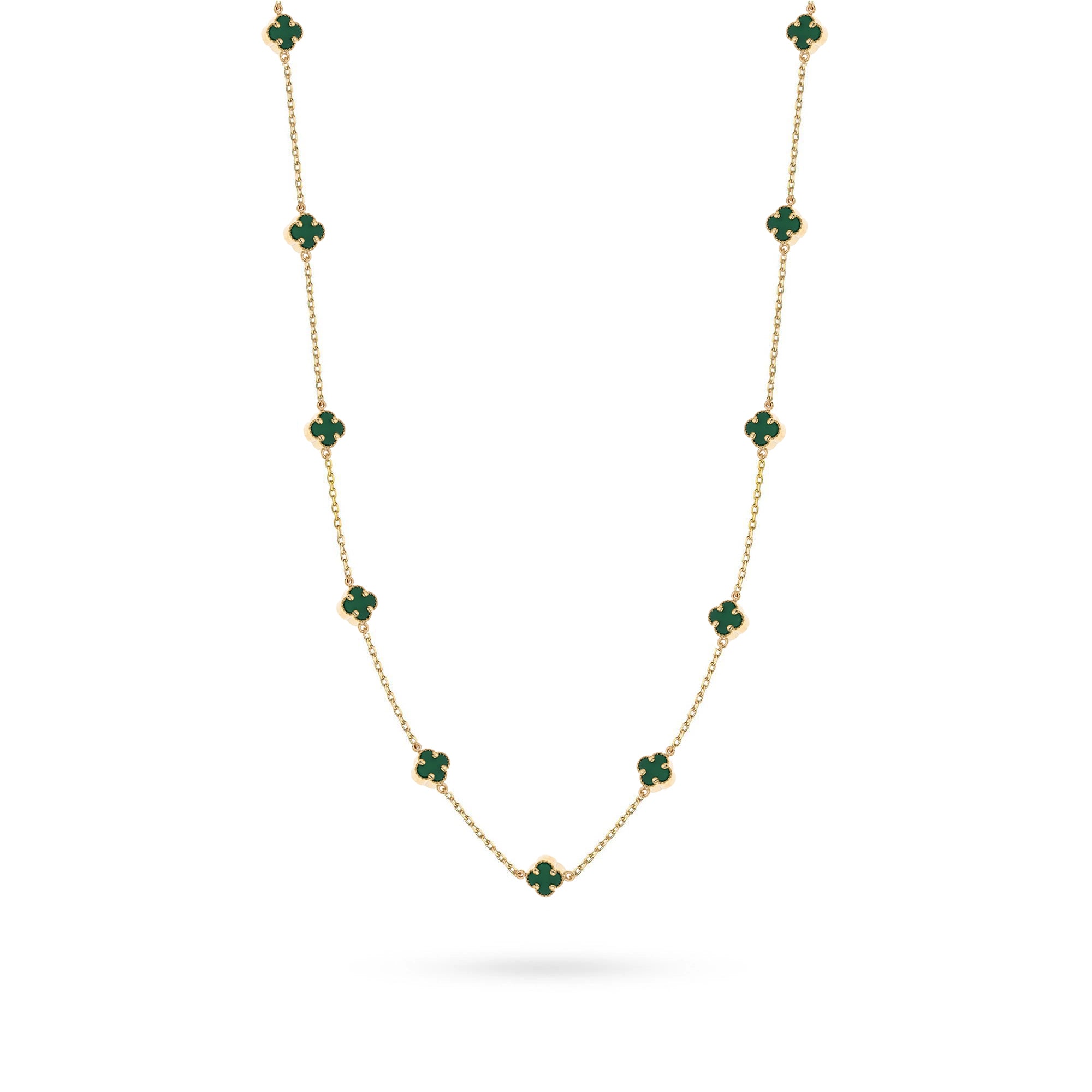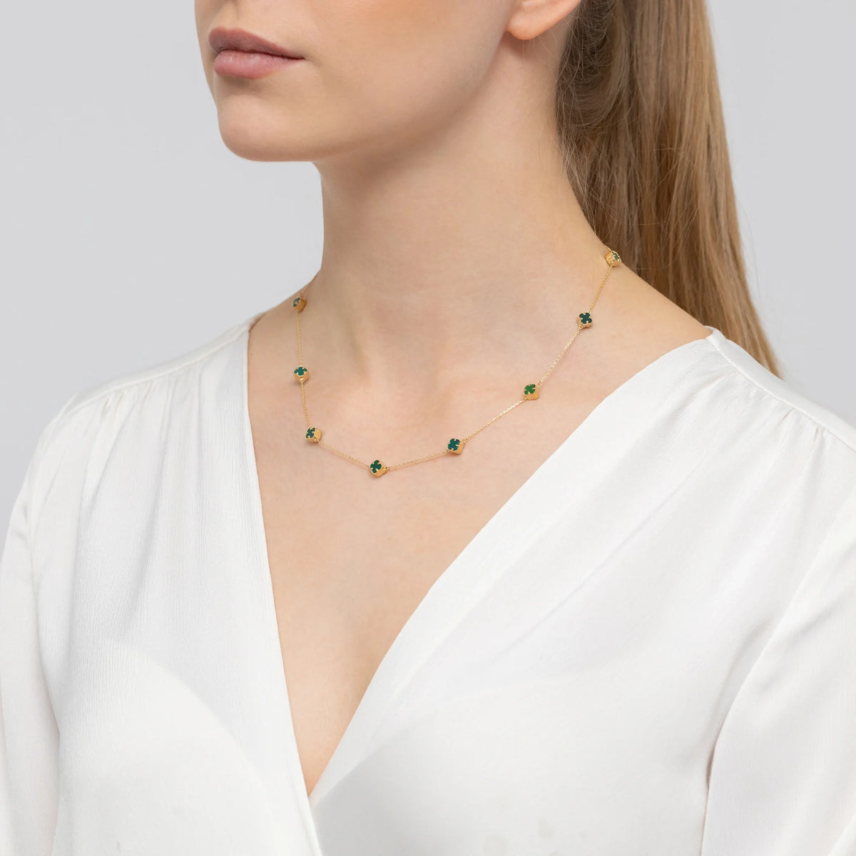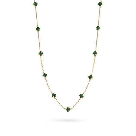 Zlatý náhrdelník so zelenými šťastnými ďatelinami