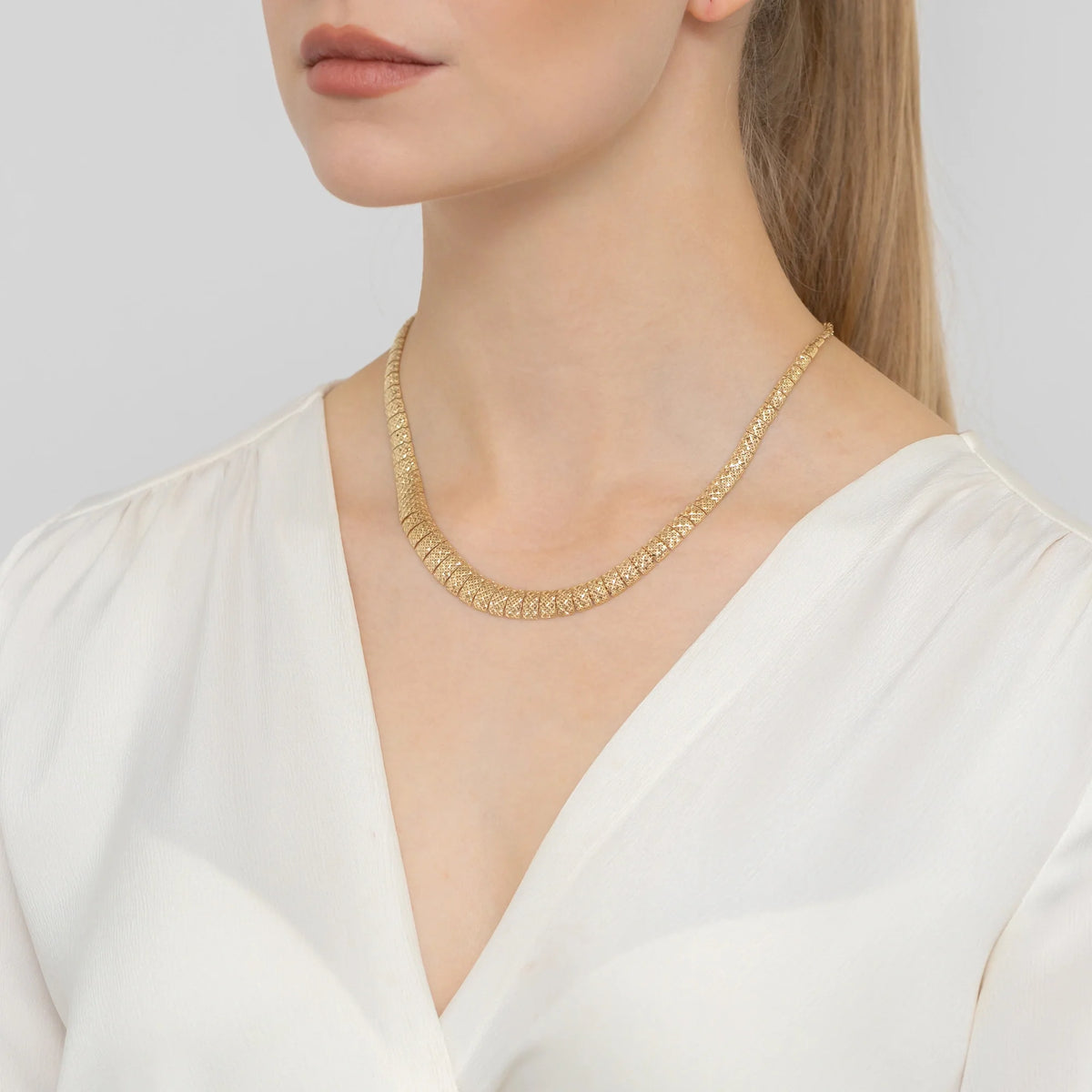 Zlatý náhrdelník s obdĺžnikovými segmentmi s diamantovým brúsením