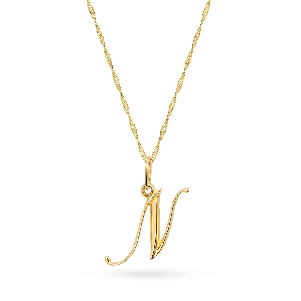 Zlatý náhrdelník s písmenom N na singapurskom reťazci