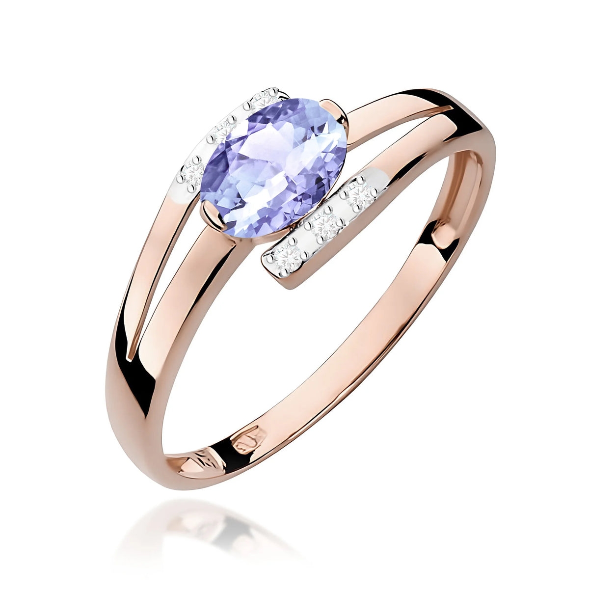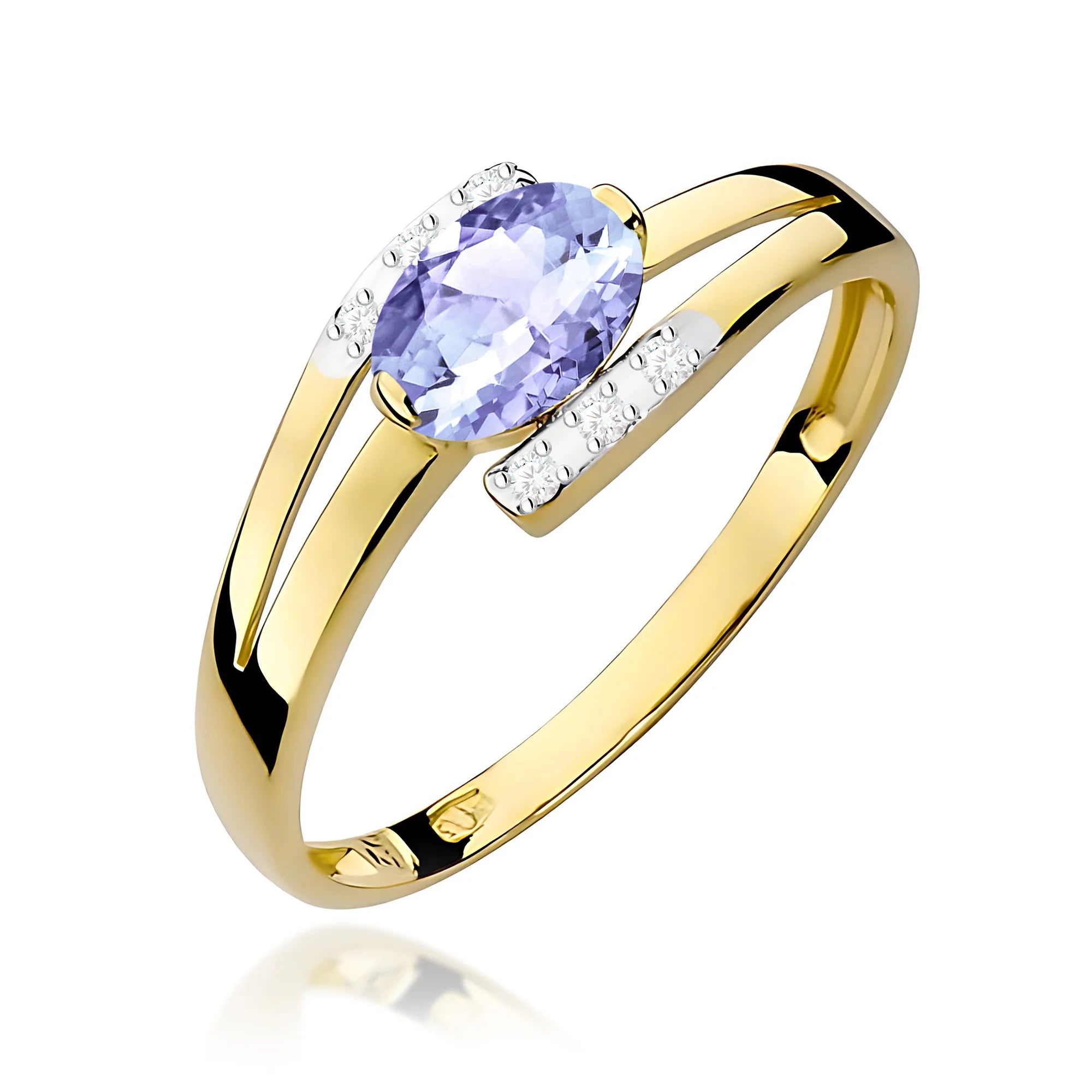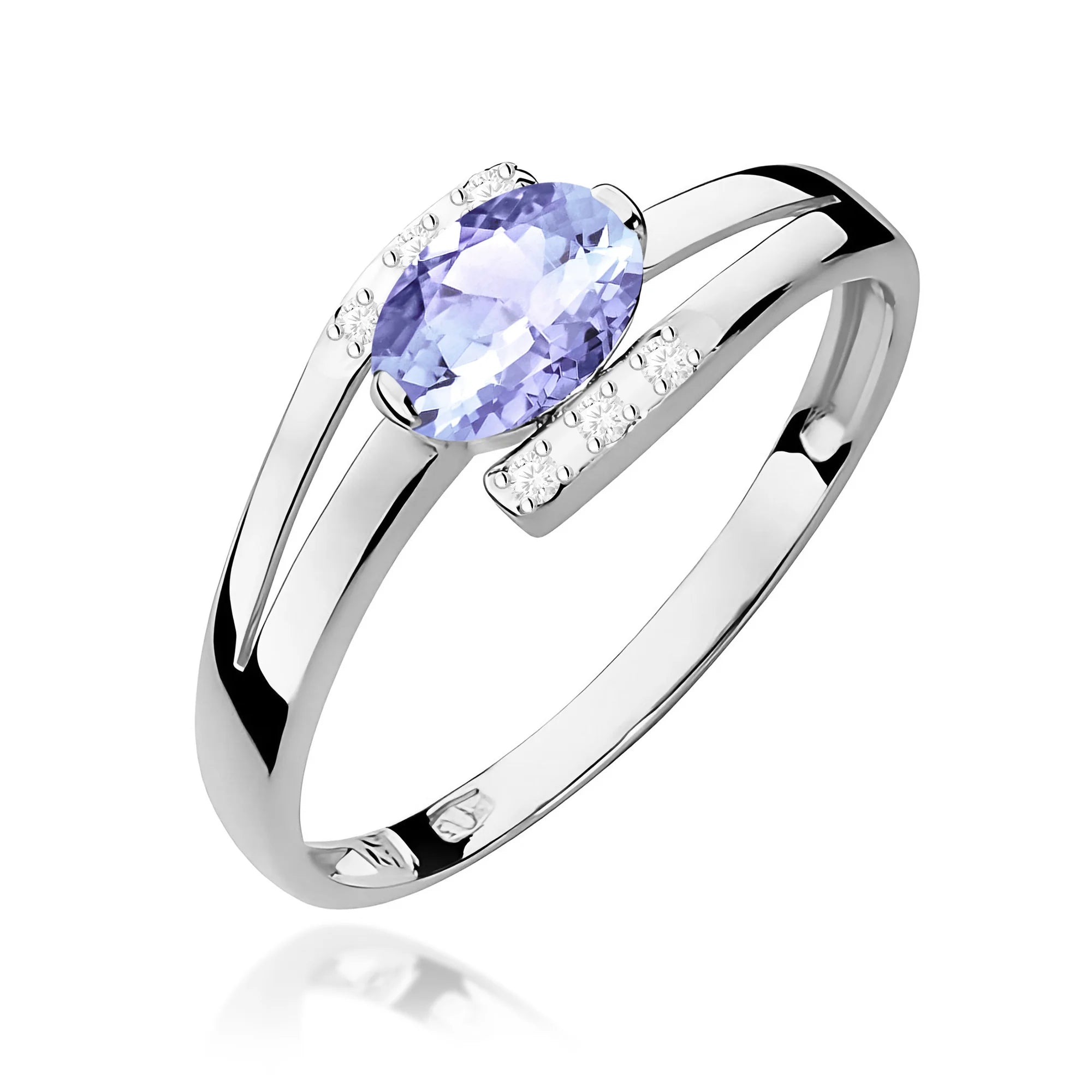 Zlatý prsteň s tanzanitom a diamantmi 0,052 ct