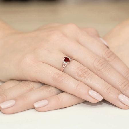 Zlatý prsteň s 0,50 ct granátom a 0,052 ct diamantmi