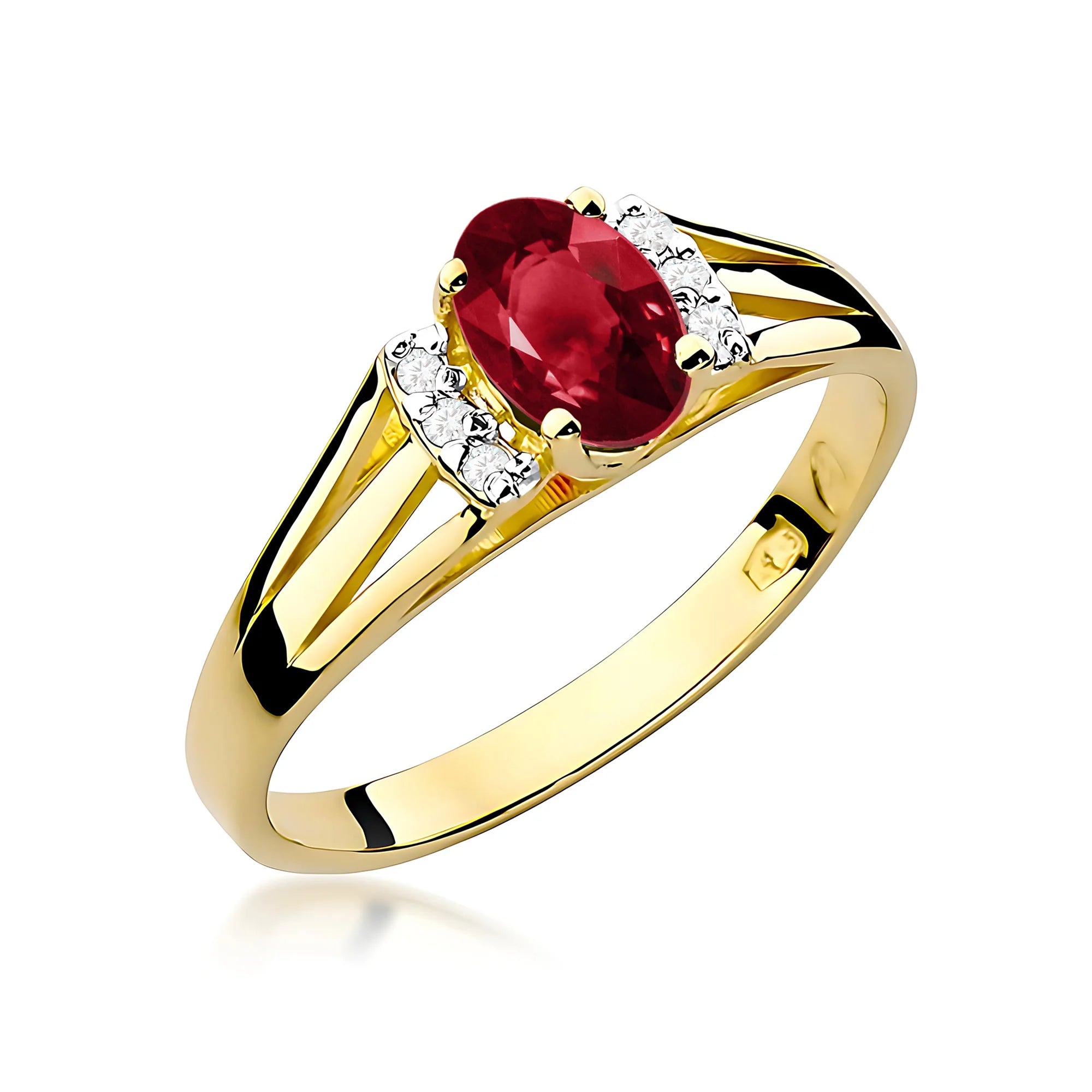 Zlatý prsteň s granátom 0,50 ct a diamantmi 0,052 ct