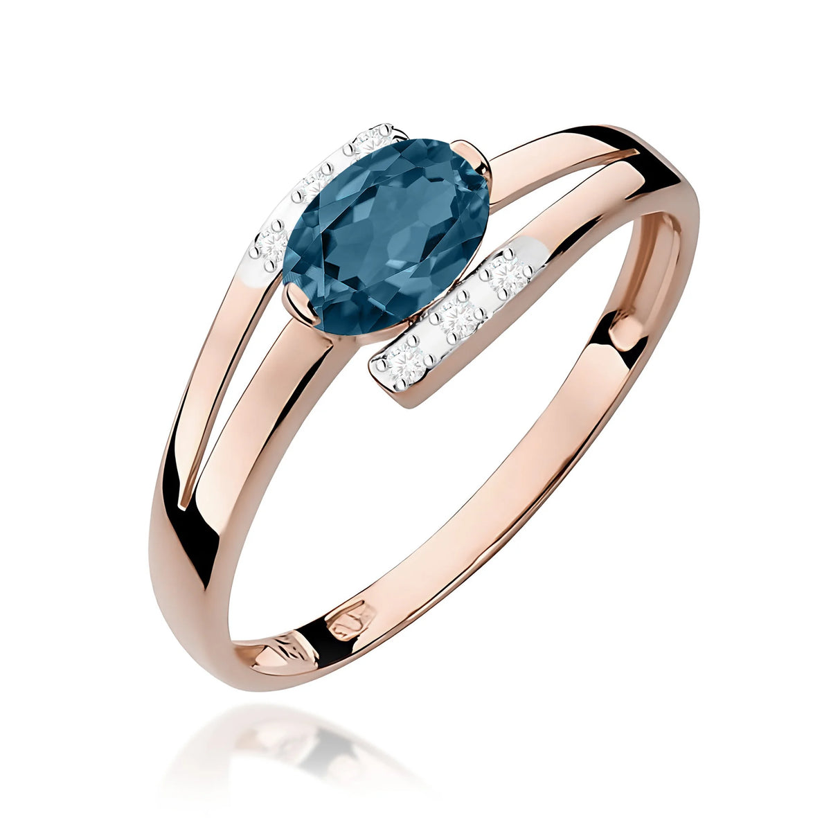 Zlatý prsteň s 0,50 ct topásom London Blue a 0,052 ct diamantmi