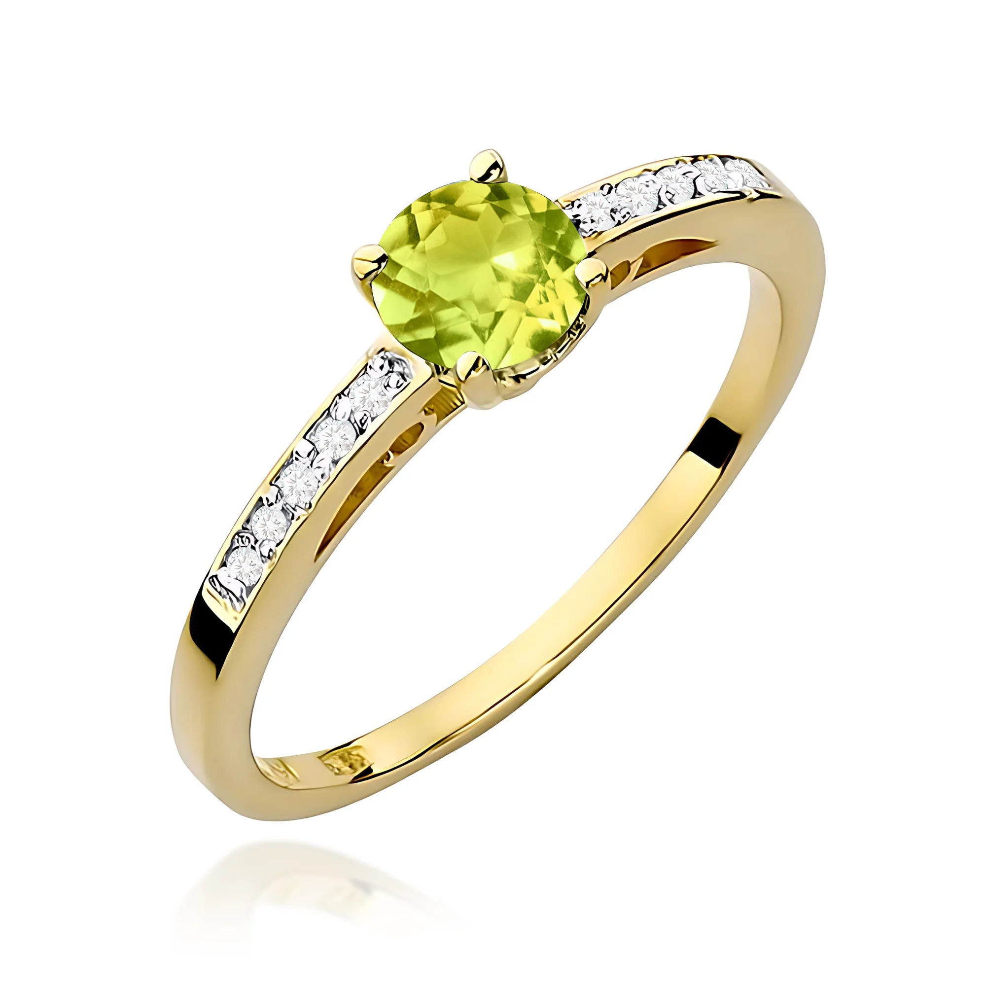 Zlatý prsteň s olivínom a diamantmi 0,05 ct