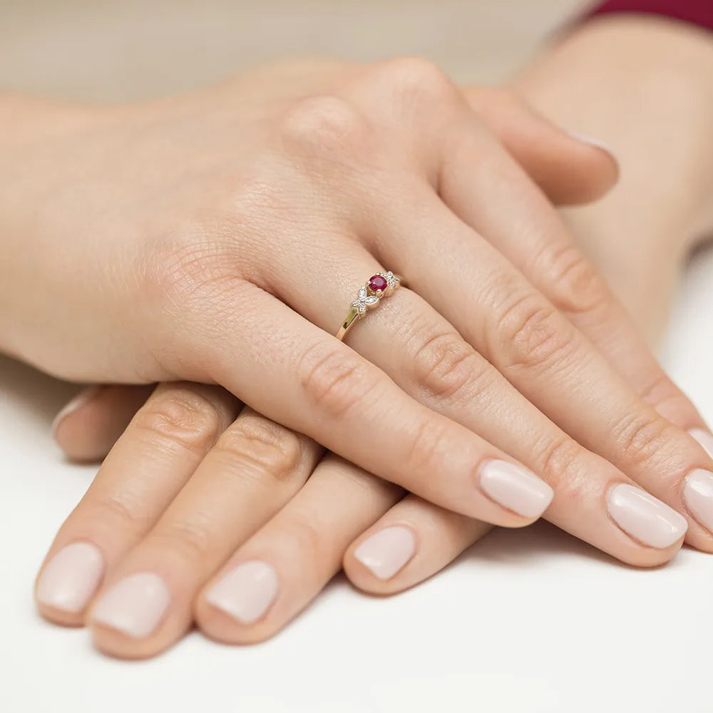 Gold Ring with 0.15ct Ruby and 0.02ct Diamonds