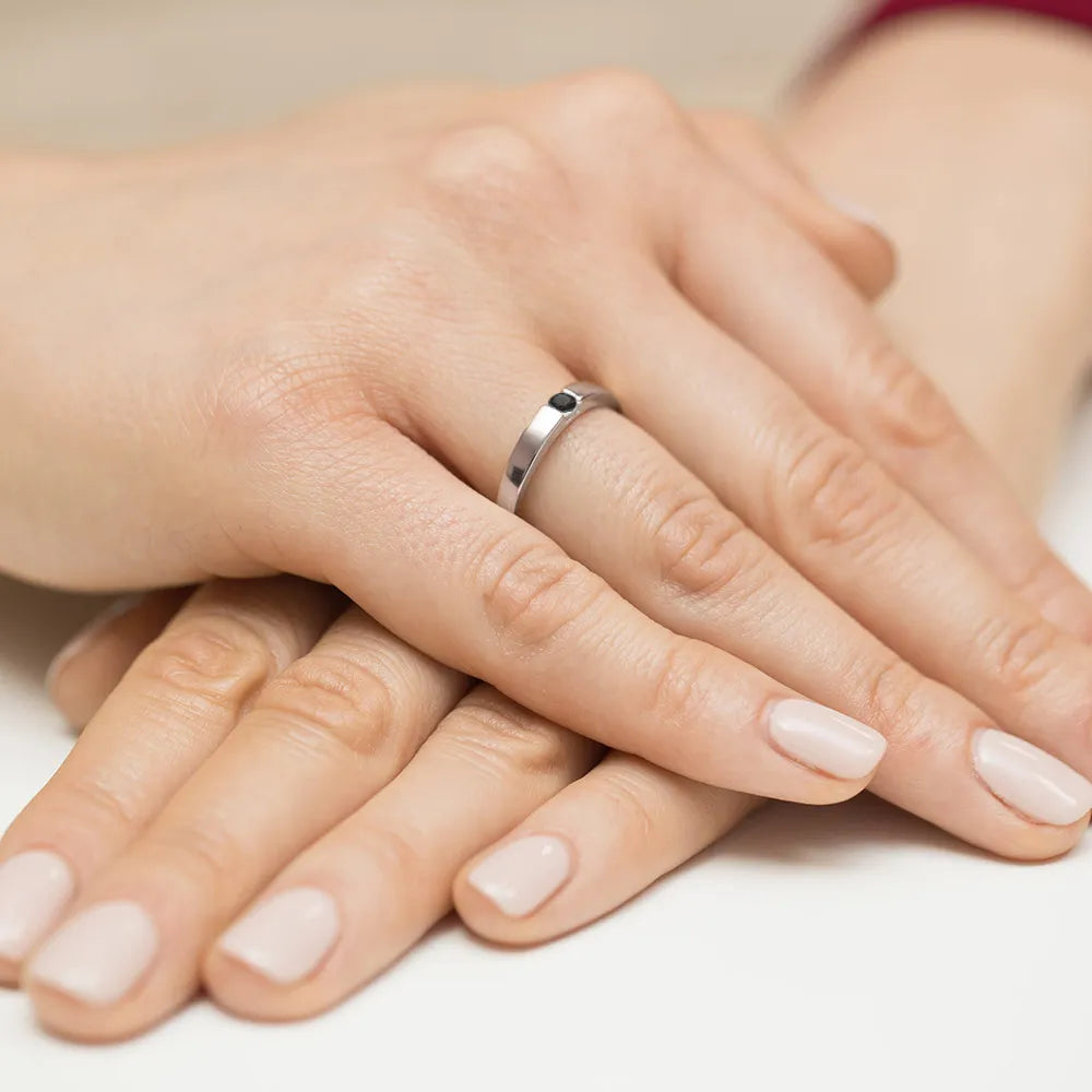 Zlatý prsteň s 0,12 ct čiernym diamantom Ručne vyrobený v tradičnej zlatníckej dielni Gremari, tento zlatý prsteň s 0,12 ct čiernym diamantom stelesňuje nadčasovú krásu a majstrovstvo remesla.