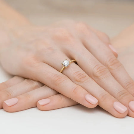 Zlatý prsteň s diamantom Ručne vyrobený v tradičnej šperkárskej dielni Gremari, tento 14K zlatý prsteň s diamantom 0,20 ct stelesňuje nadčasovú krásu a majstrovské remeslo. Osadený v 14K zlate s puncovým označením 585, drahokamy spájajú eleganciu, jemnosť a odolnosť. Prsteň je dostupný v troch farebných variantoch: žlté zlato, biele zlato a ružové zlato – jednoducho si vyberte preferovanú variantu vyššie.