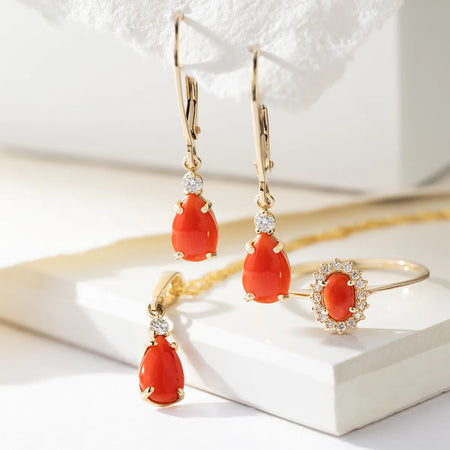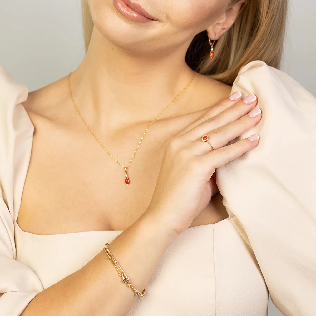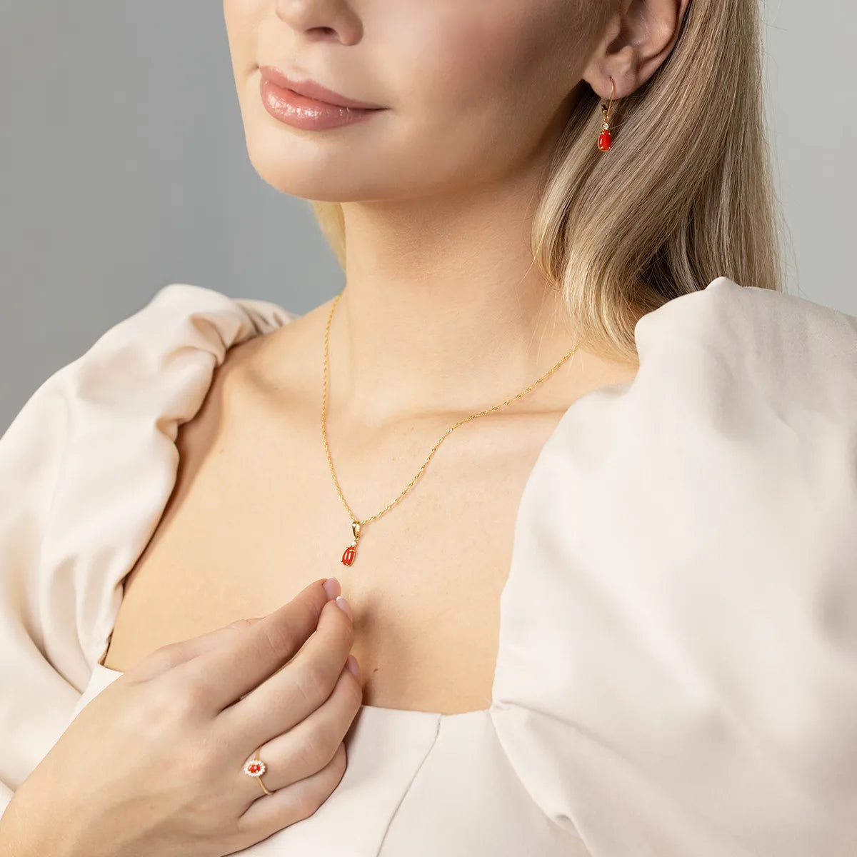 Zlatý prsteň s 0,20 ct koralom a 0,08 ct postrannými diamantmi