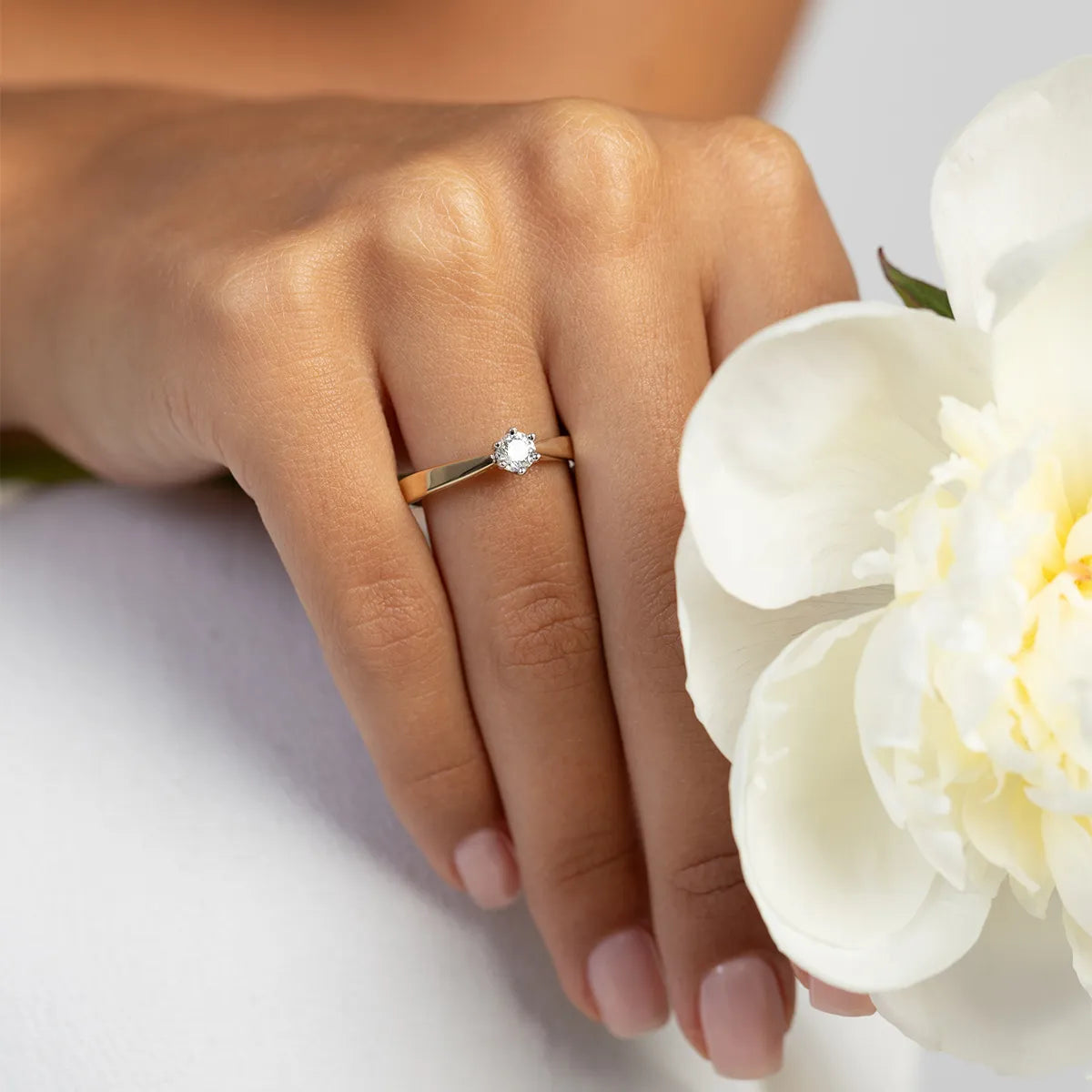 Klasický zlatý zásnubný prsteň s laboratórne pestovaným diamantom
