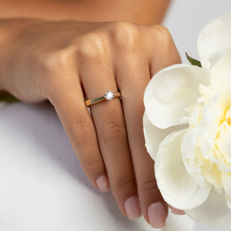 Ručne vyrobený v tradičnej šperkovnici Gremari, tento zlatý zásnubný prsteň s 0,30 ct laboratórne pestovaným diamantom stelesňuje nadčasovú krásu a majstrovské remeslo.