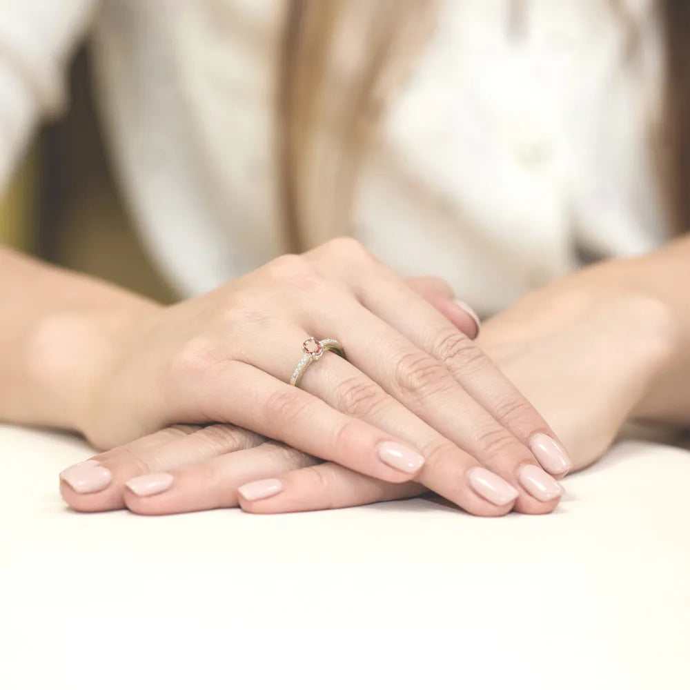 Zlatý prsteň s 0,40 ct morganitom a 0,05 ct diamantmi