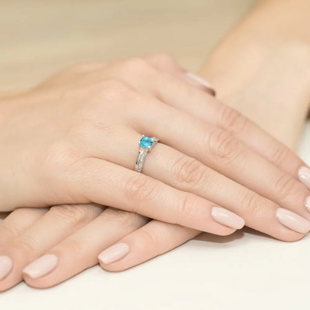 Zlatý prsteň s topásom a diamantmi 0,03 ct Ručne vyrobený v tradičnej šperkovnici Gremari, tento 14K zlatý prsteň s topásom 0,50 ct a 6 diamantmi s celkovou hmotnosťou 0,03 ct predstavuje nadčasovú krásu a majstrovské remeslo. Osadený v 14K zlate s puncom 585, drahokamy spájajú eleganciu, jemnosť a odolnosť. Prsteň je dostupný v troch farebných variantoch: žlté zlato, biele zlato a ružové zlato – jednoducho si vyberte preferovanú variantu vyššie.