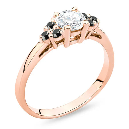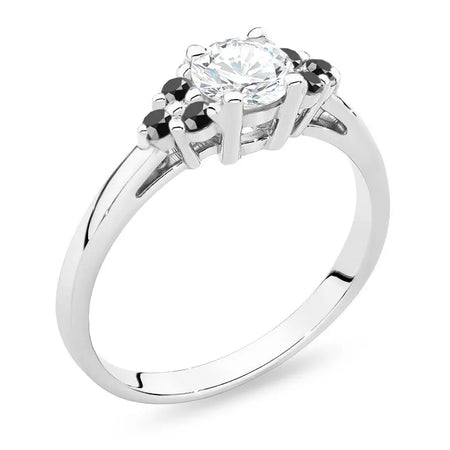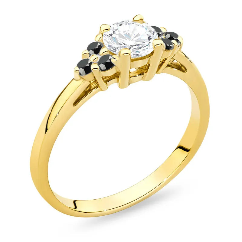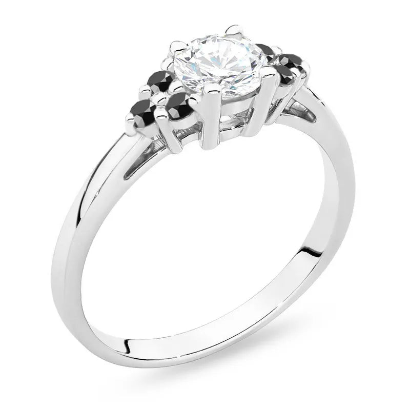 Zlatý prsteň s 0,60ct bielym zafírom a 6 čiernymi diamantmi