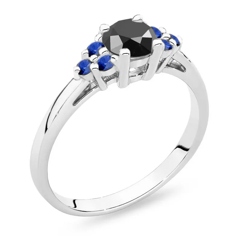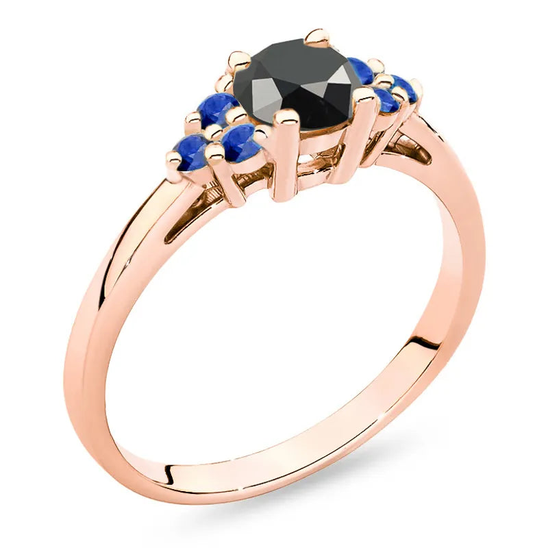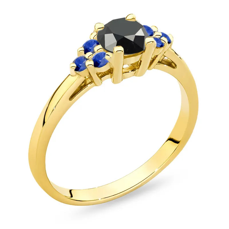 Zlatý prsteň s 0,50ct čiernym diamantom a 6 zafírmi